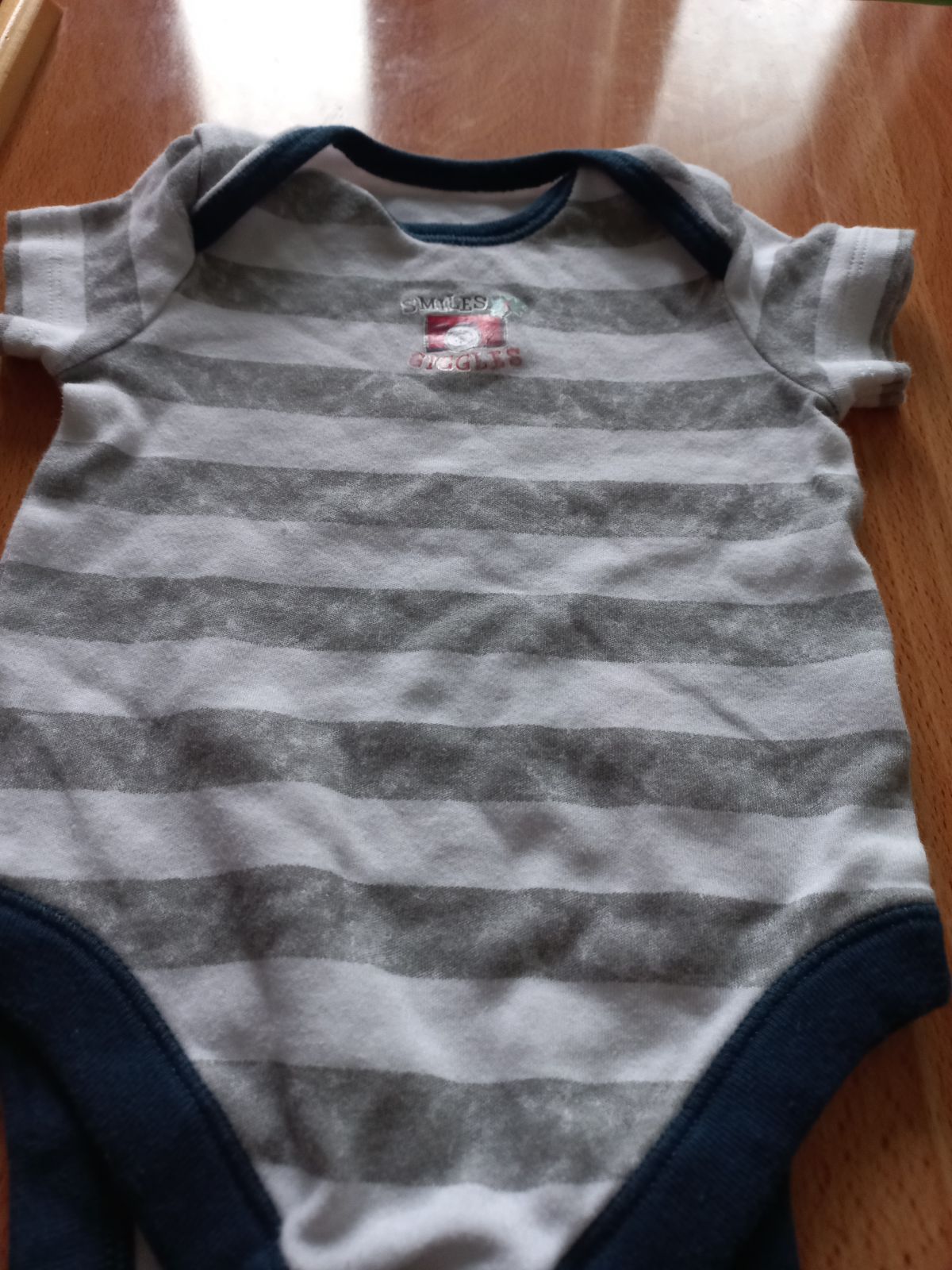 Daruji za odvoz . Hezké dětské body s krátkým rukávem a s šedým proužkem. Velikost 3-6M. Všechny nabídky oblečení jsou v perfektním stavu. Jestli si vyberete I jinou mou nabídku, odpovězte na ni, abych mohla rezervovat. Děkuji.