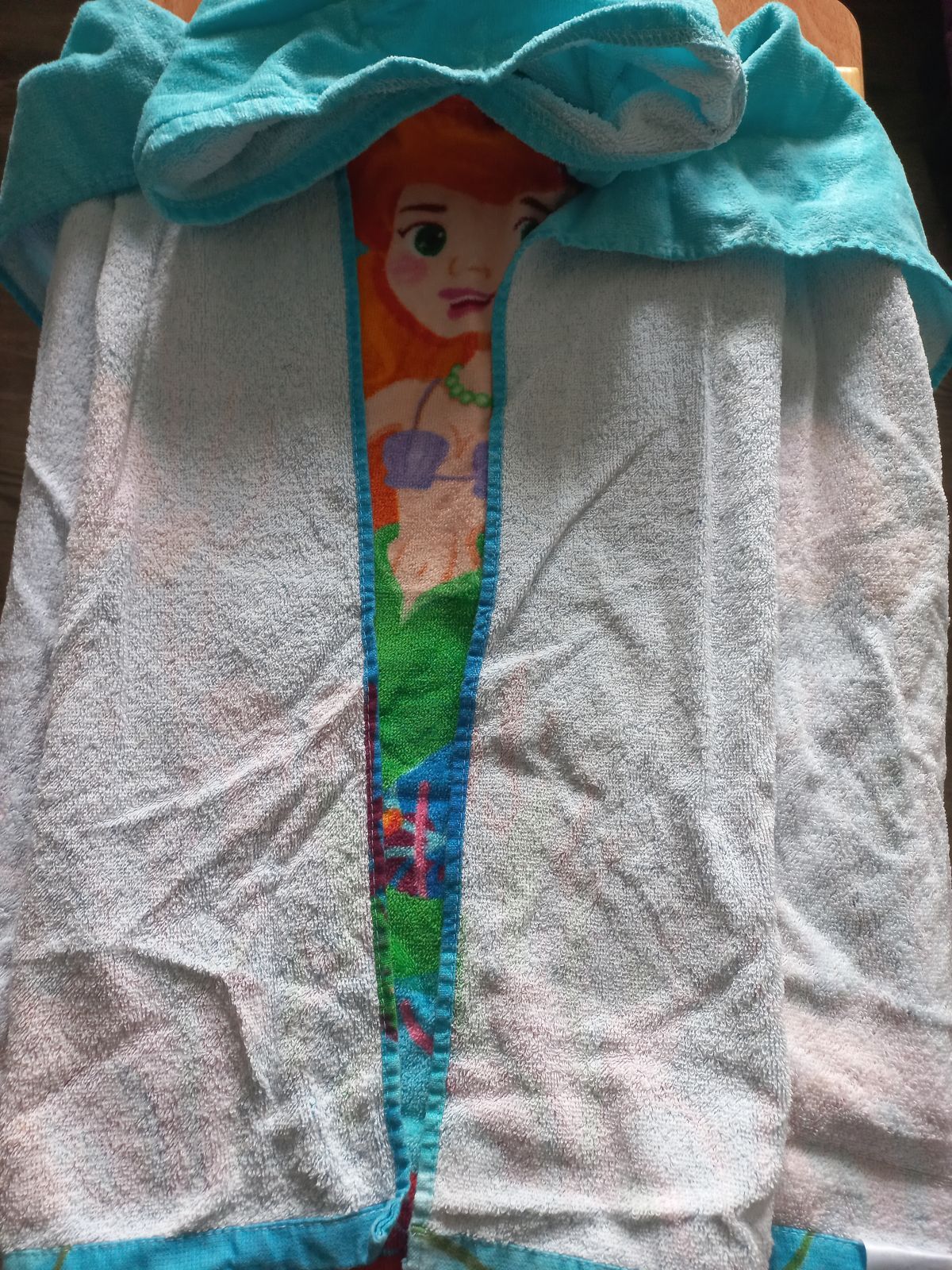Daruji za odvoz . Dětský župánek s kapucí velikost jsem nikde nenasla délka 56m. Motiv Ariel. Před časem jsme dostali zde, již nevyuzijeme. Podívejte se na mé další nabídky.