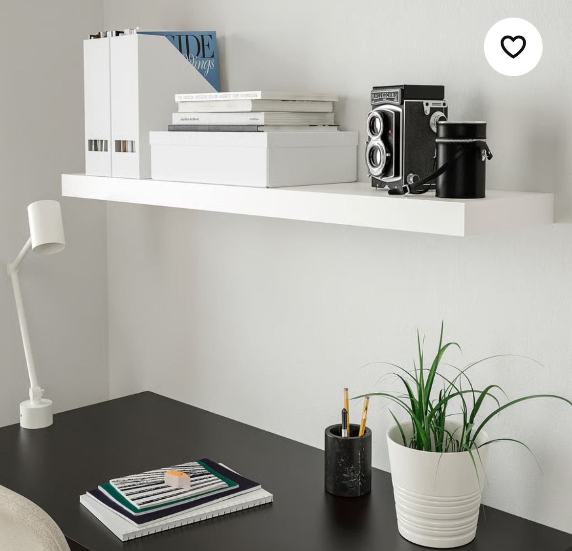 2 bílé police včetně šroubů a konstrukce k montáži