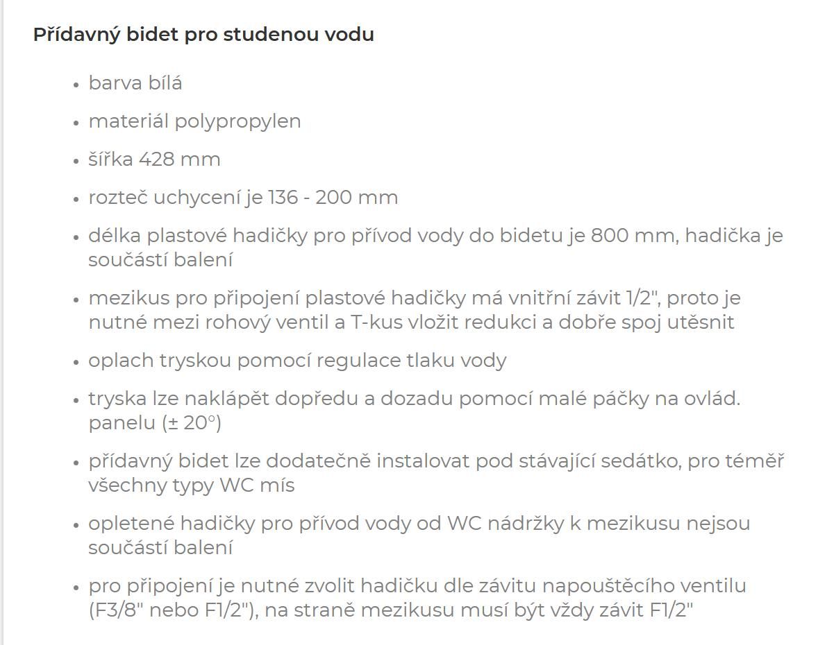 Přídavný bidet - nikdy nepoužitý - Sapho Easy Cleaning