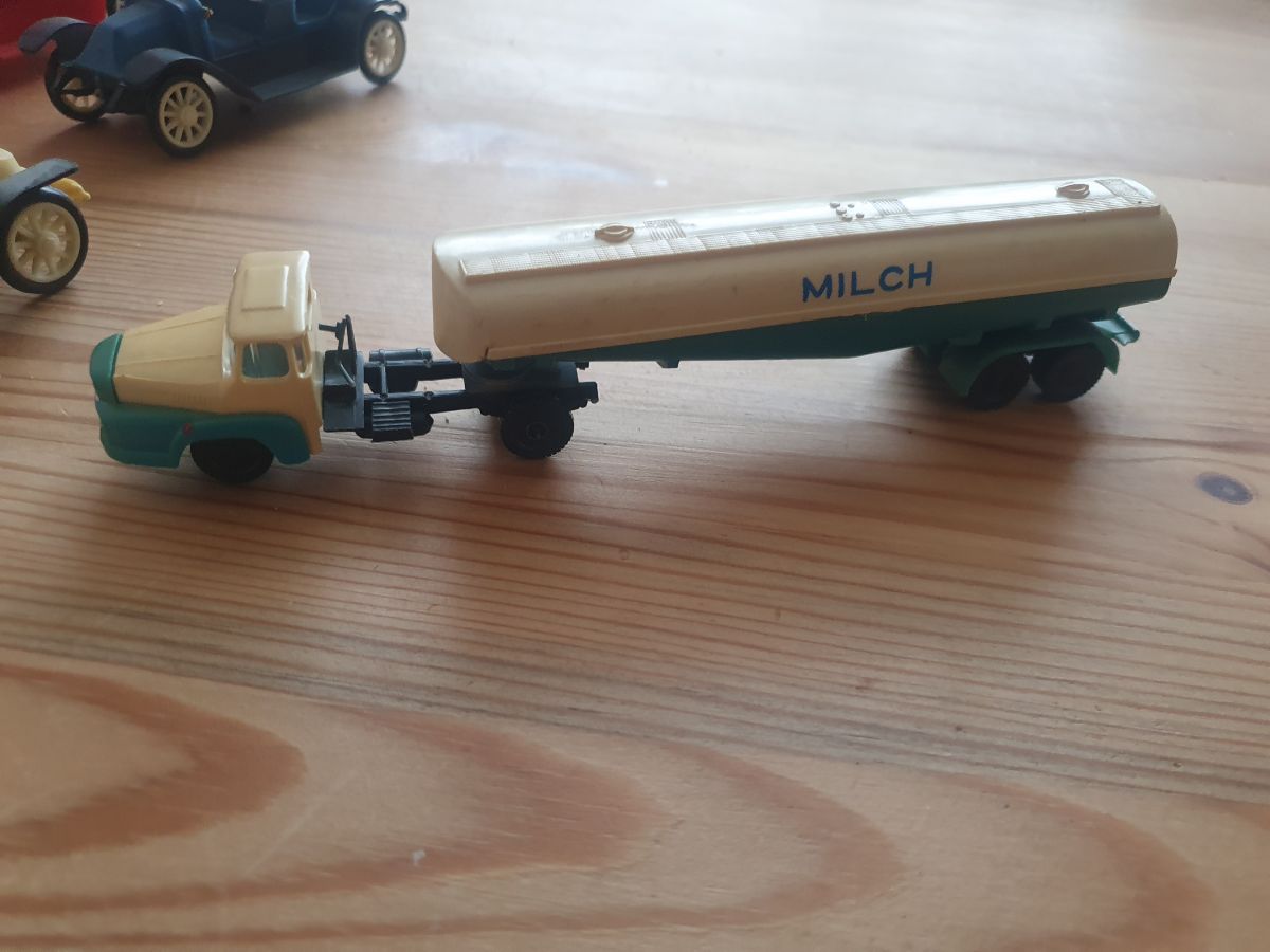 Daruji za odvoz auticka, viz fotky. Vel. Cca 9 cm, cisterna 17 cm, cisterne chybí cudlik na připojení ke kabině. Auto 1 nemá volant.