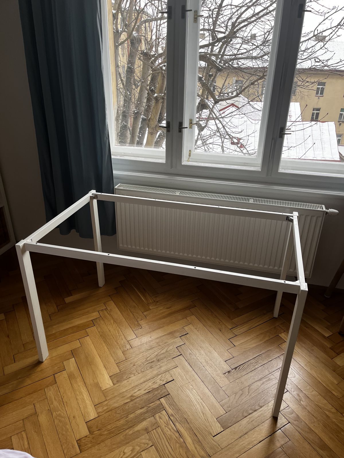 Daruji za odvoz IKEA MELLTORP Rám pro stolní desku 125 x 75 x v. 74,5 cm (bez dosky). Farba: biela, dobry stav, srouby originalne su.
