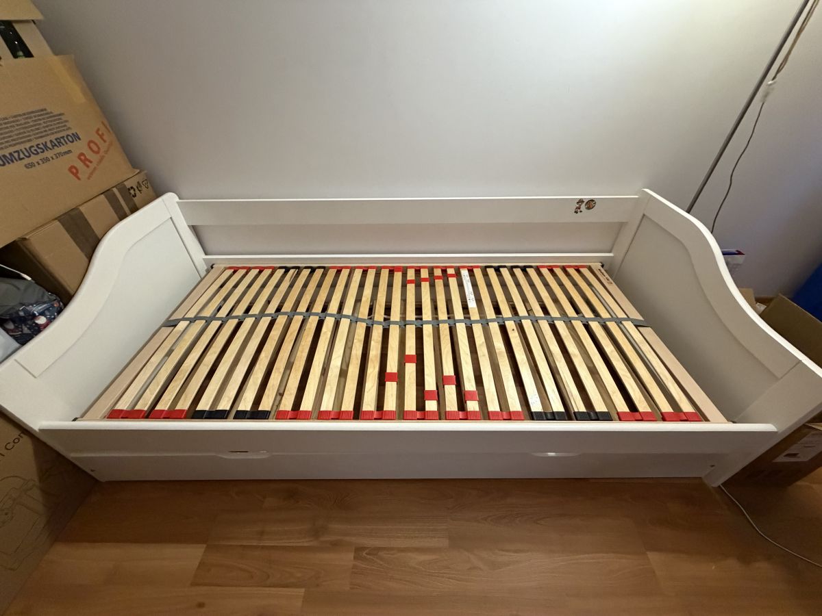 Daruji za odvoz postel 90x200 cm, která má výsuvný šuplík, kam se dá dát další matrace. Včetně roštů.