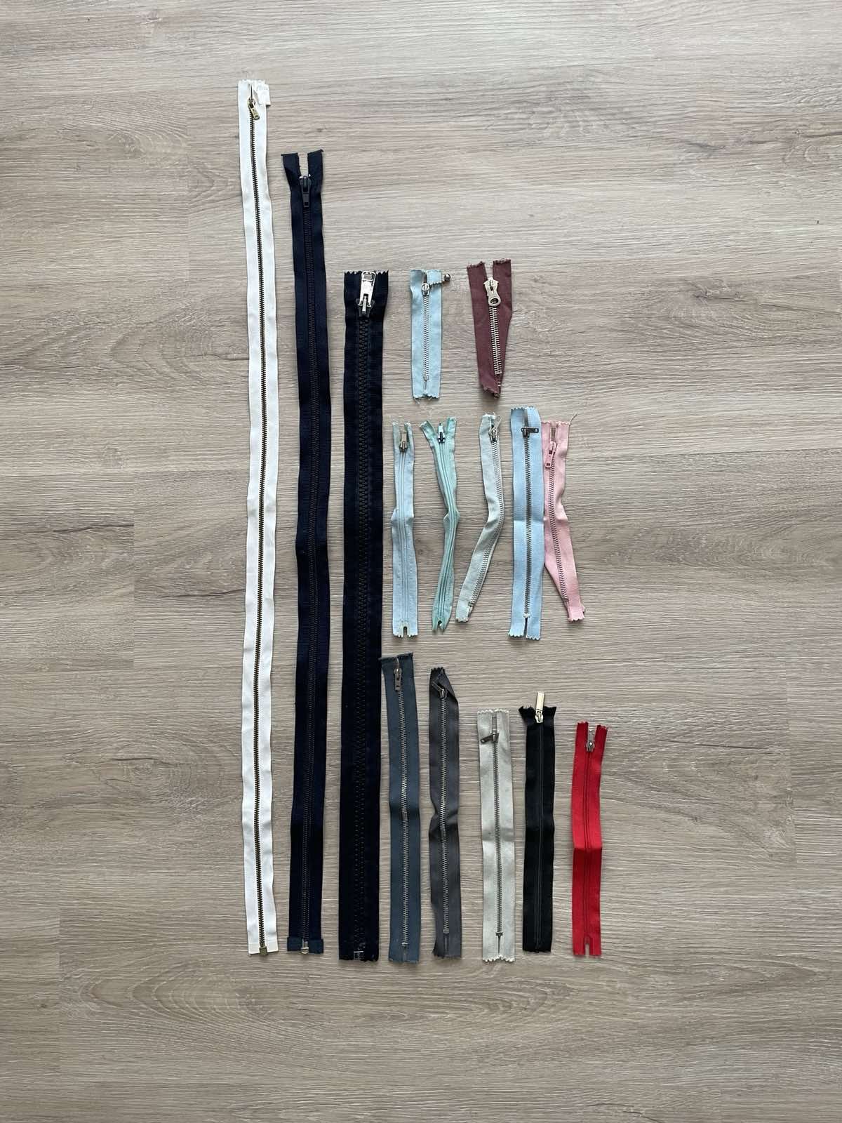 Daruji za odvoz zipy / zdrhovadla různých rozměrů - nejdelší je bundový vlevo / bílý (délka 80 cm), všechny jsou v pořádku (tvary jsou dány tím, jak byly skladovány). Pro urychlení komunikace uvítám konkrétní návrh, kdy můžete vyzvednout - místo předání viz profil.