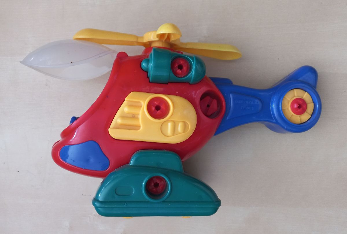 Daruji za odvoz dětskou helikoptéru, rozebíratelnou jako stavebnice.