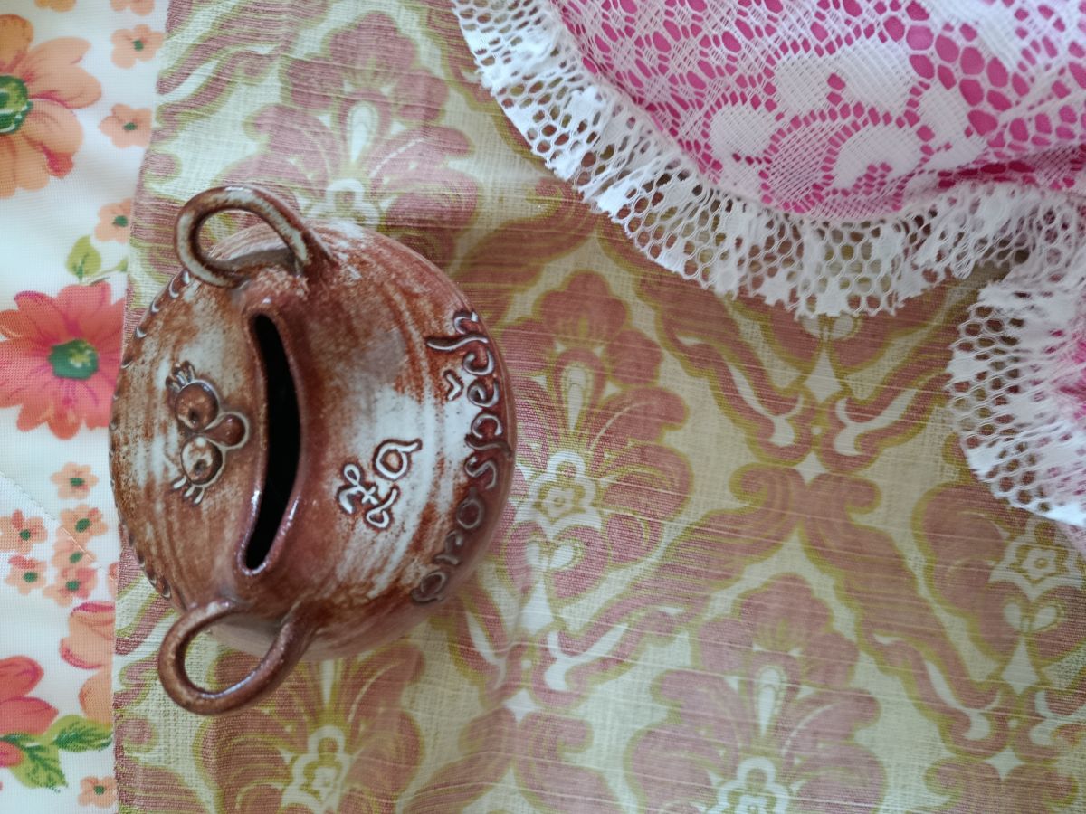 Daruji za odvoz keramickou kasičku s nápisem Za prospěch.