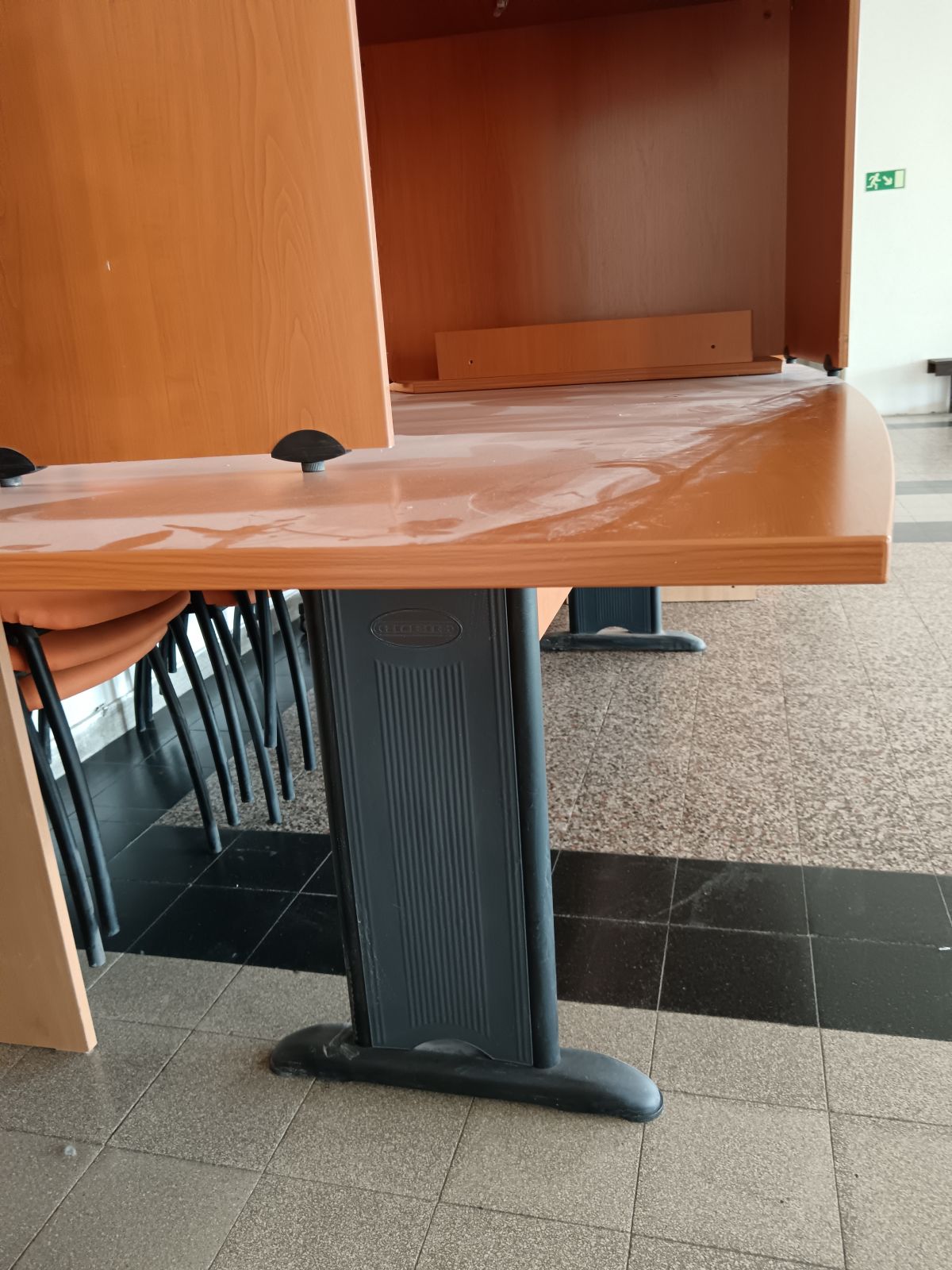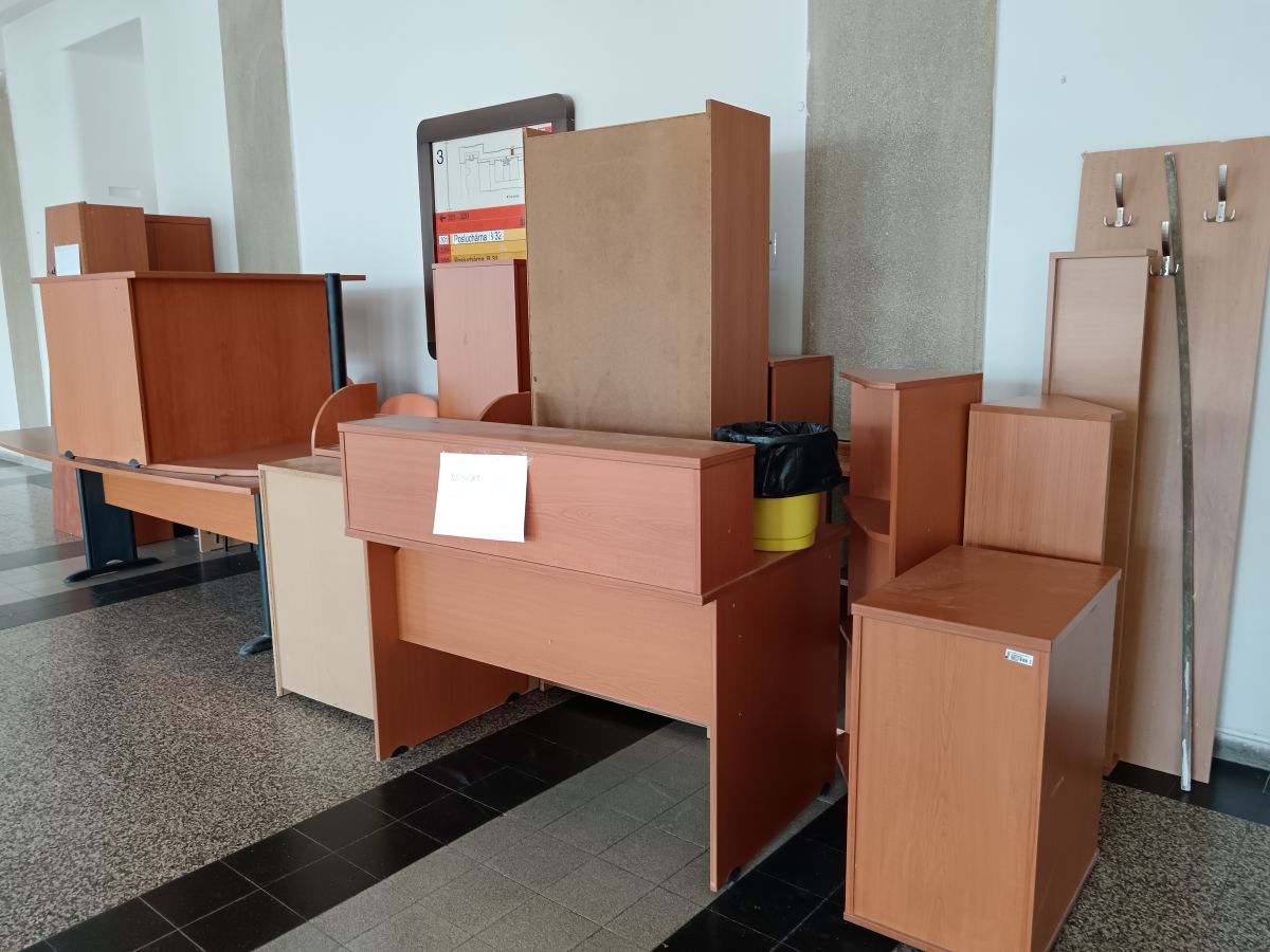 Daruji za odvoz velký stůl používaný jako konferenční. Zaoblená deska. Délka 260cm, šířka uprostřed 100cm, šířka na krajích 80cm, výška 76cm. Nohy černé. K vyzvednutí v blízkosti metra Dejvická. Vyřazujeme i některé ze skříněk (viz celkové foto), v případě zájmu změřím rozměry a možno odvézt i ty.