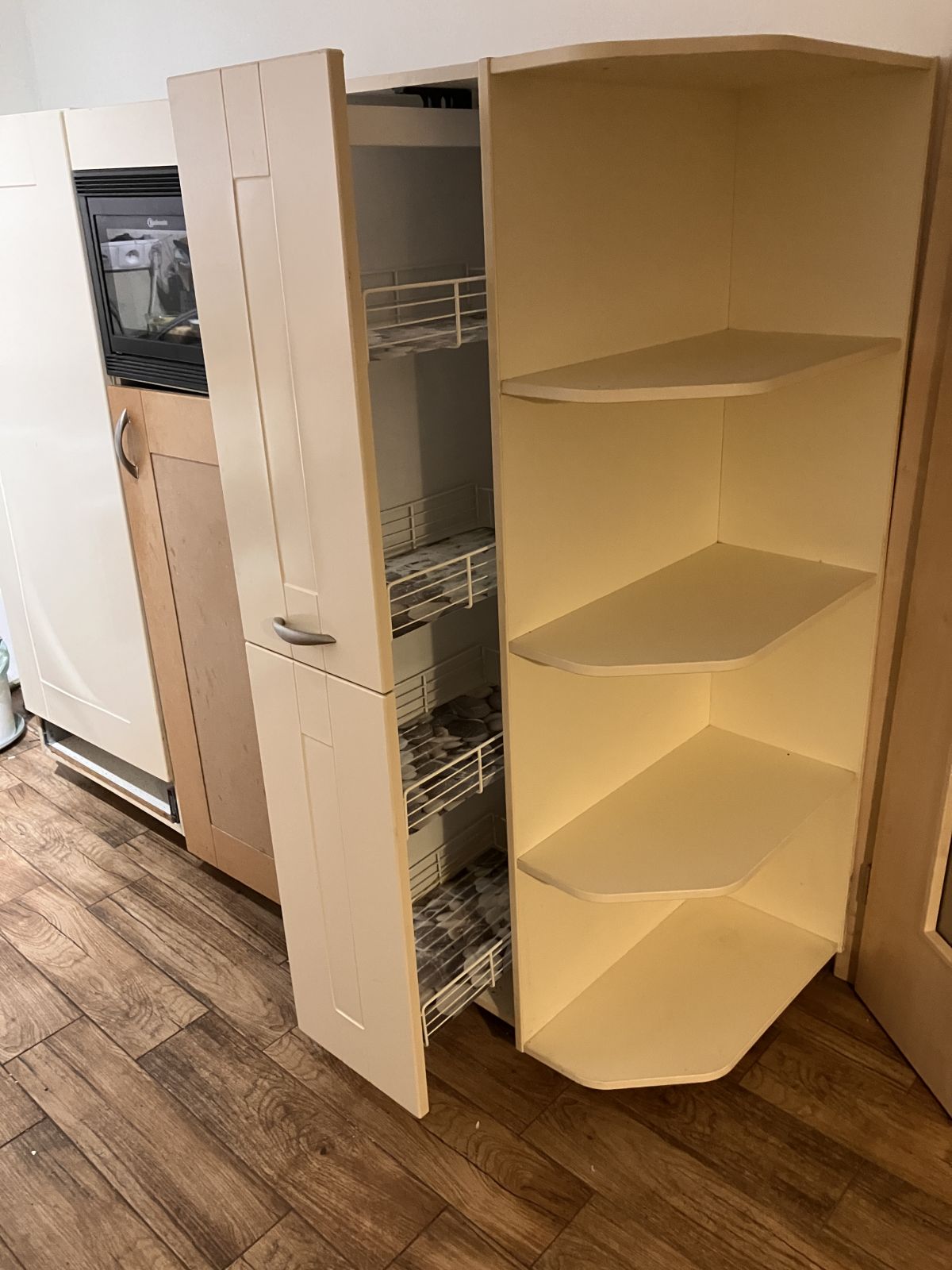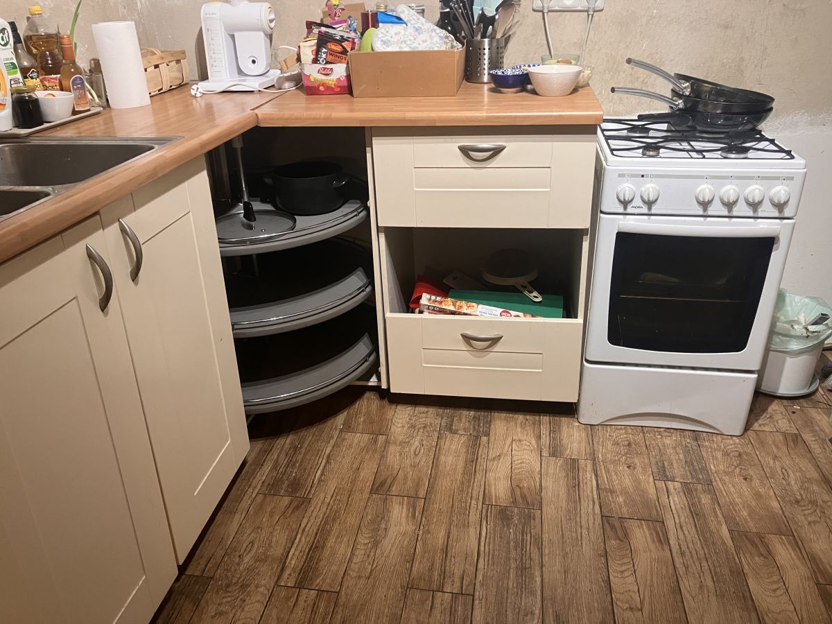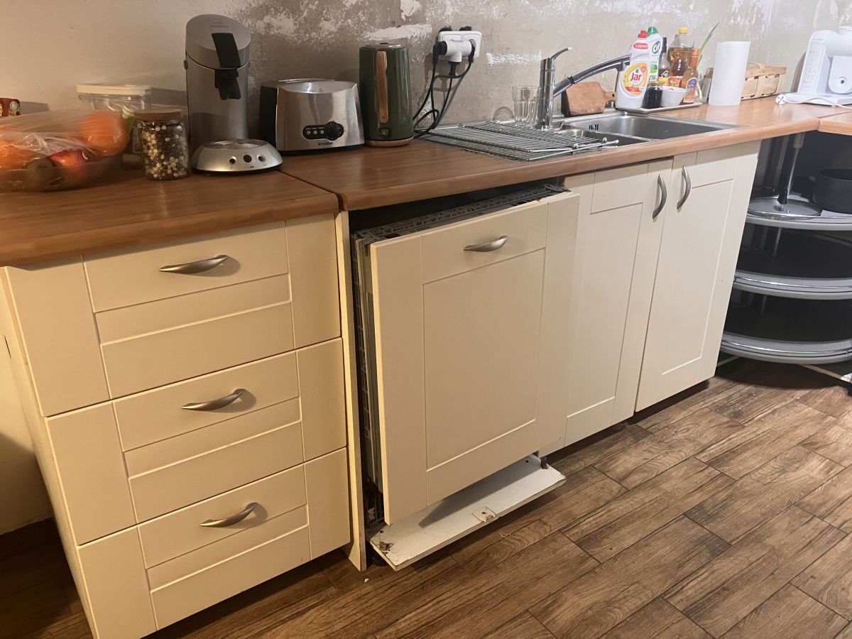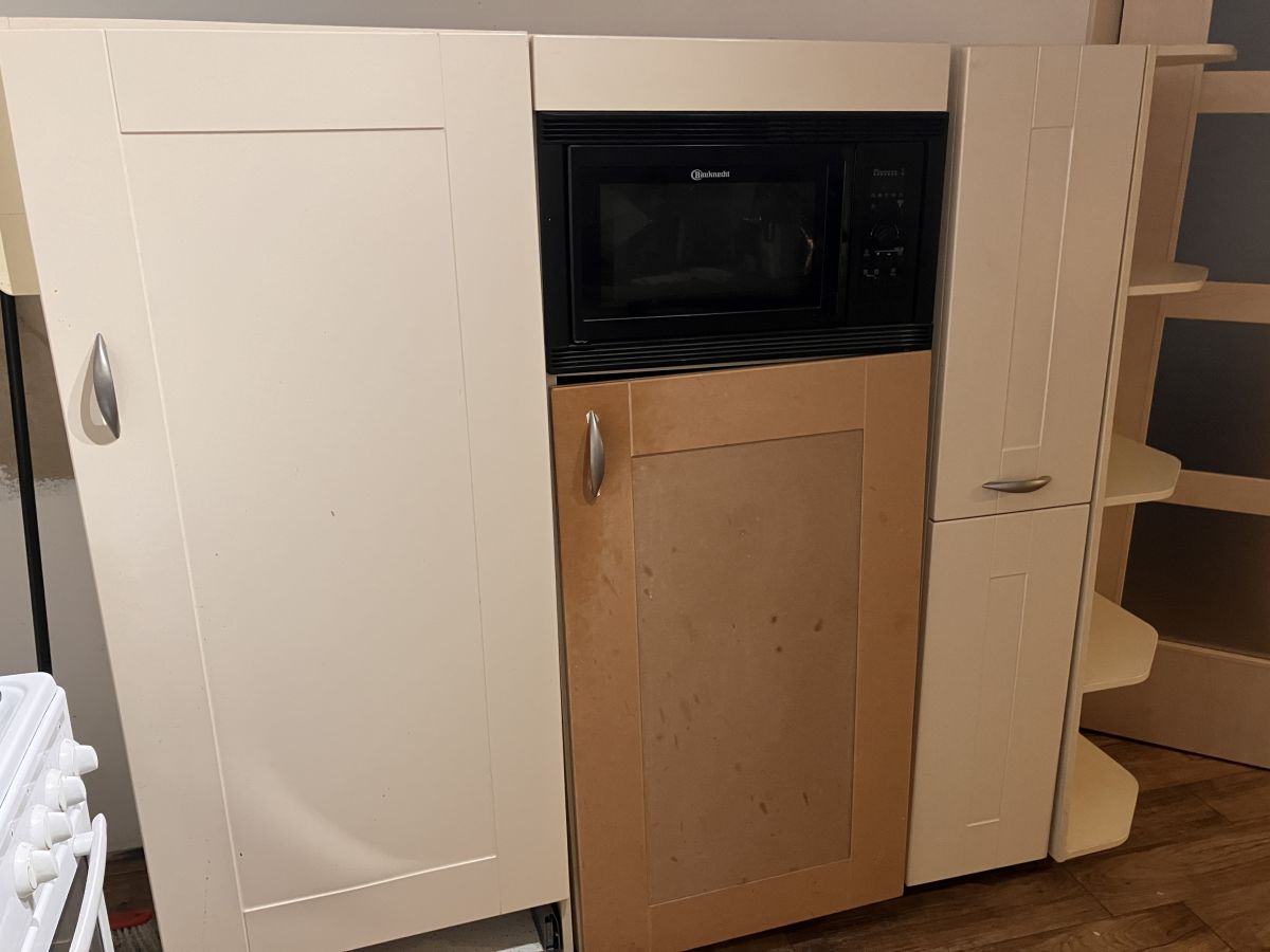 Daruji za odvoz. Do středy musí pryč. Lednice, mikrovlnka, myčka, dřez a baterie. Vše funkční. Rozměry vysokých skříněk - 180 cm šířka (60+60+30+30) výška cca 150cm. Vysoké skříňky mají ještě dřevěnou desku, kterou jsem již sundala. Roh 153 X 305 cm. Výška dle nastavení, ja měla cca 95 cm. Pohodlná šuplata, jedno chce opravu. Sporak není součástí nabídky. Převzetí Mnichovice - Praha Východ. Přízemí rodinného domu. Parkovat lze hned před vchodem.