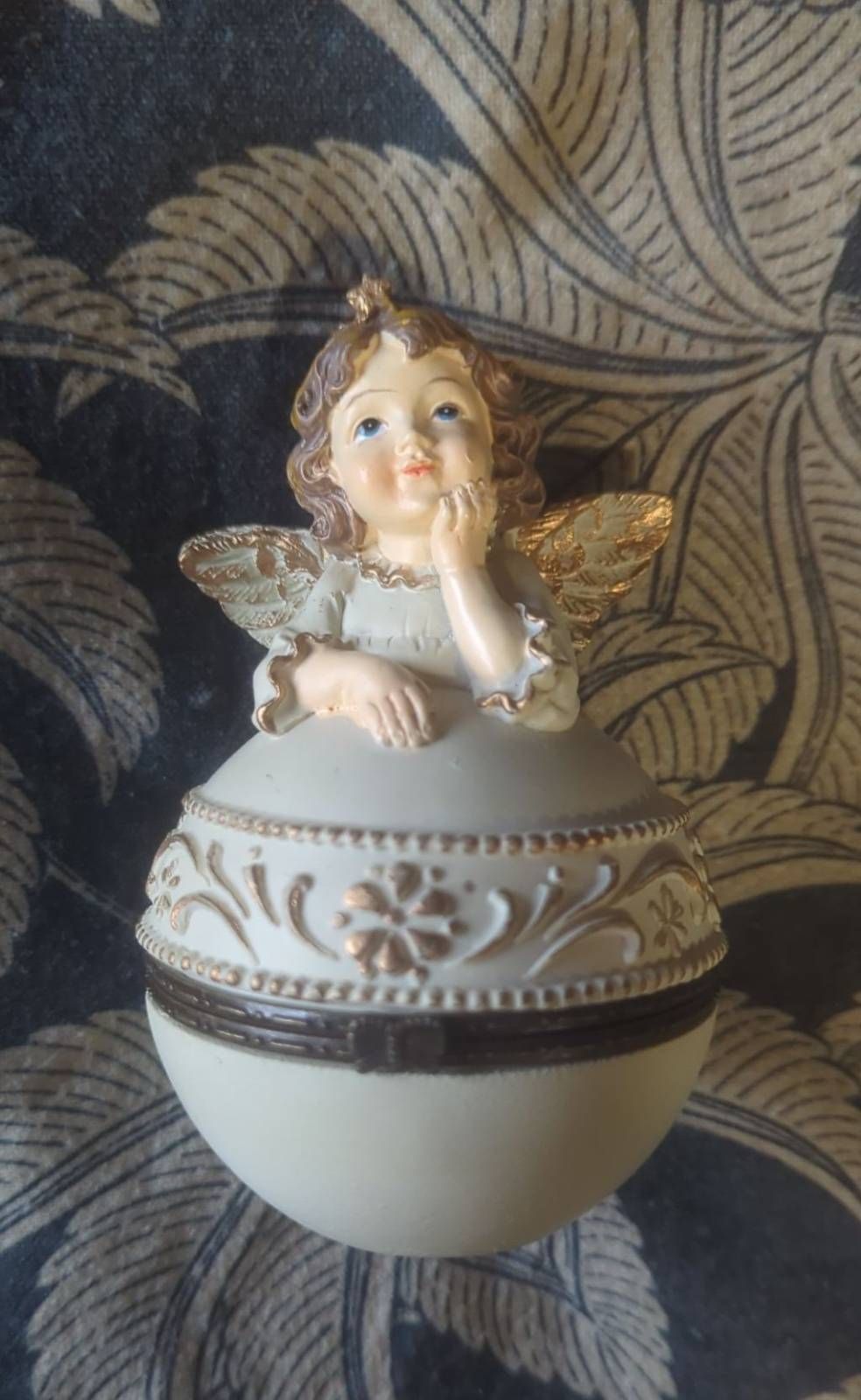 Daruji za odvoz šperkovnici/uzavíratelnou věc s andílkem. I s krabičkou :) Předání kousek od Flory.
