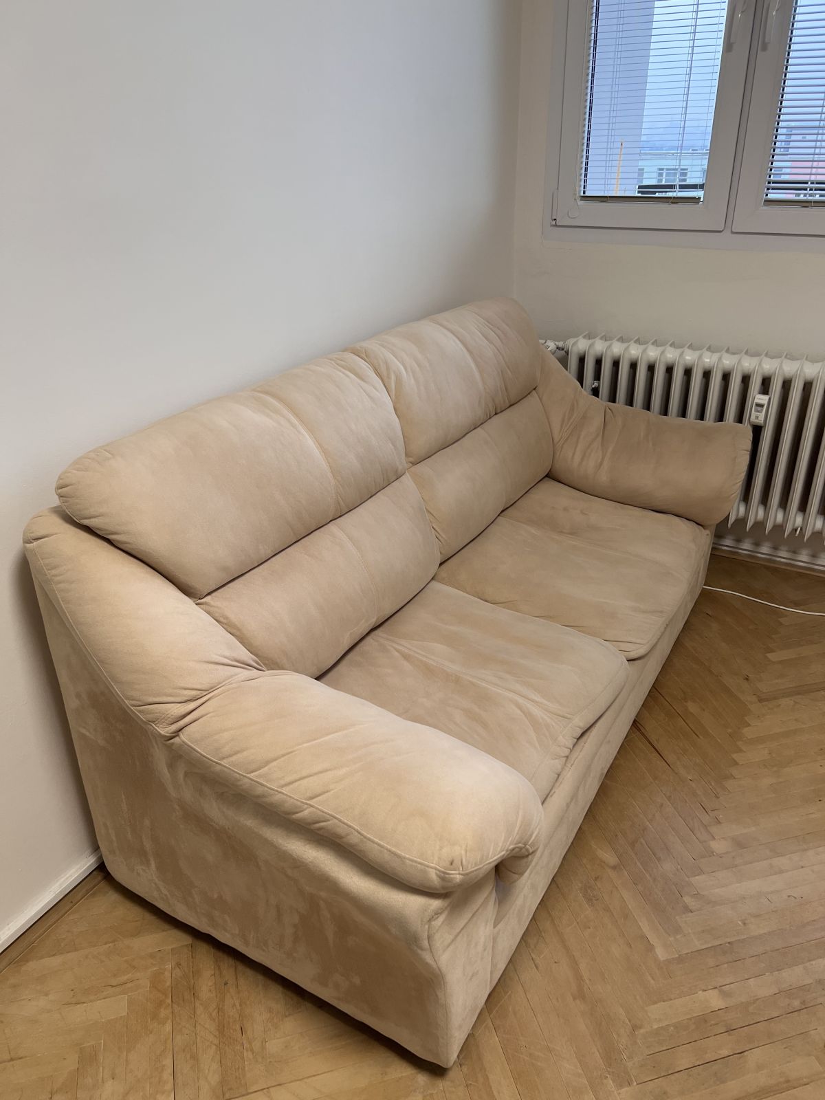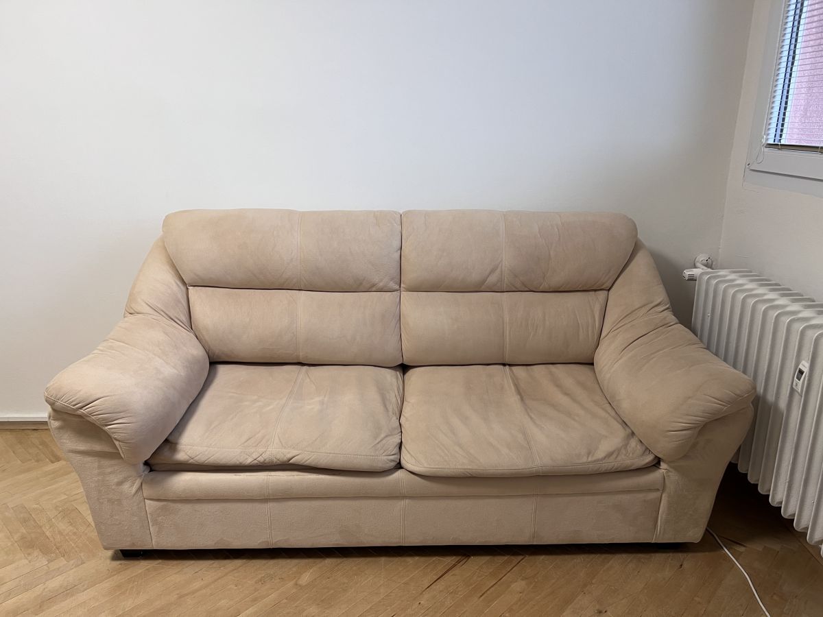 Nabízím béžovou rozkládací sedací soupravu za odvoz.