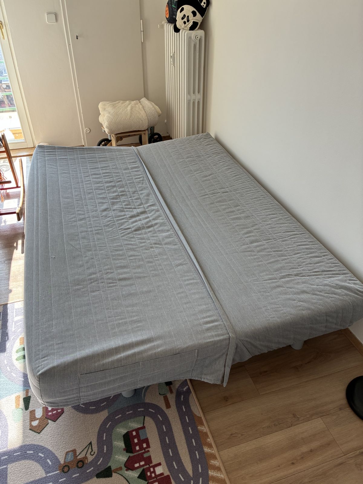 Daruji za odvoz rozkládací pohovku z Ikei. Délka 2 m. Šedý potah se skládá ze dvou částí (spojené zipem) a je tedy sundavatelný a pratelný. Z boku praktické kapsy. Pohovka je už starší, ale rozhodně dále poslouží, nemá žádné patrné vady.