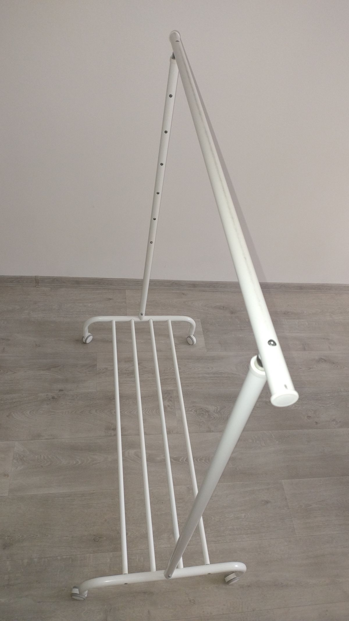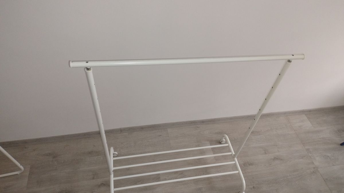 Daruji za odvoz bílý šatní stojan, lze upravit výšku, na vrchní části lehké oděrky