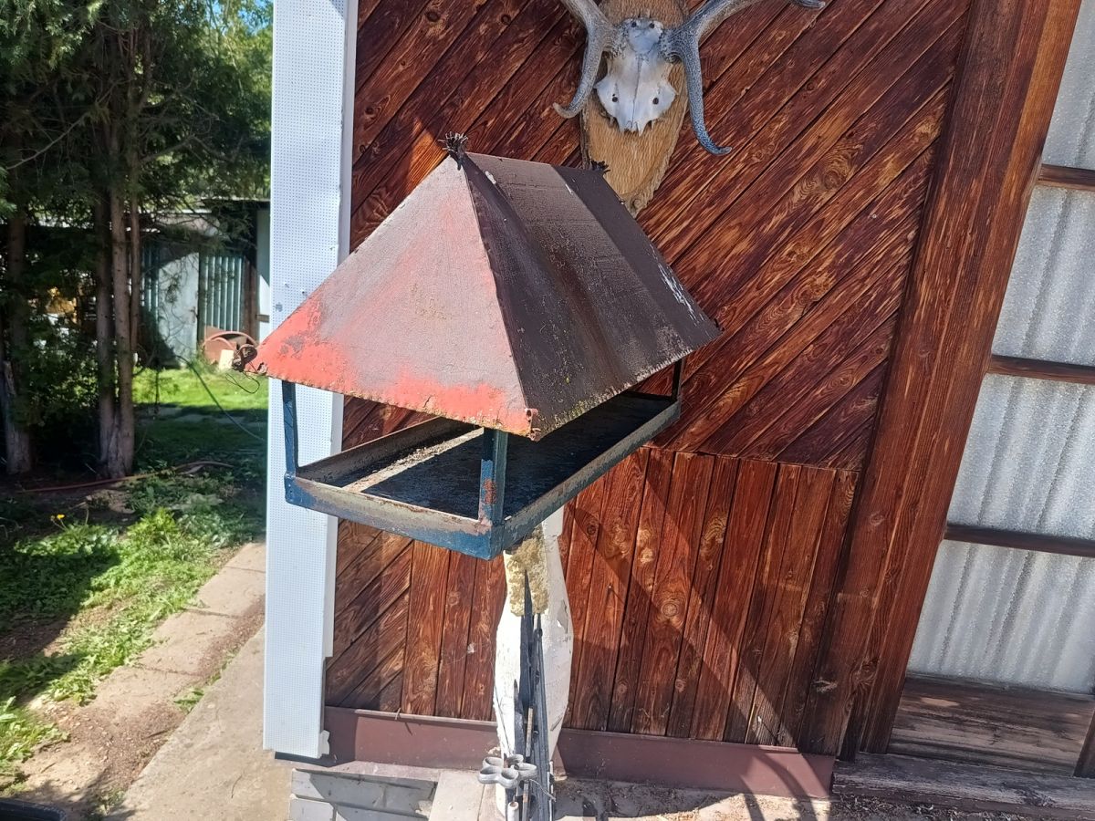 Daruji za odvoz. Velké venkovní kovové krmítko.