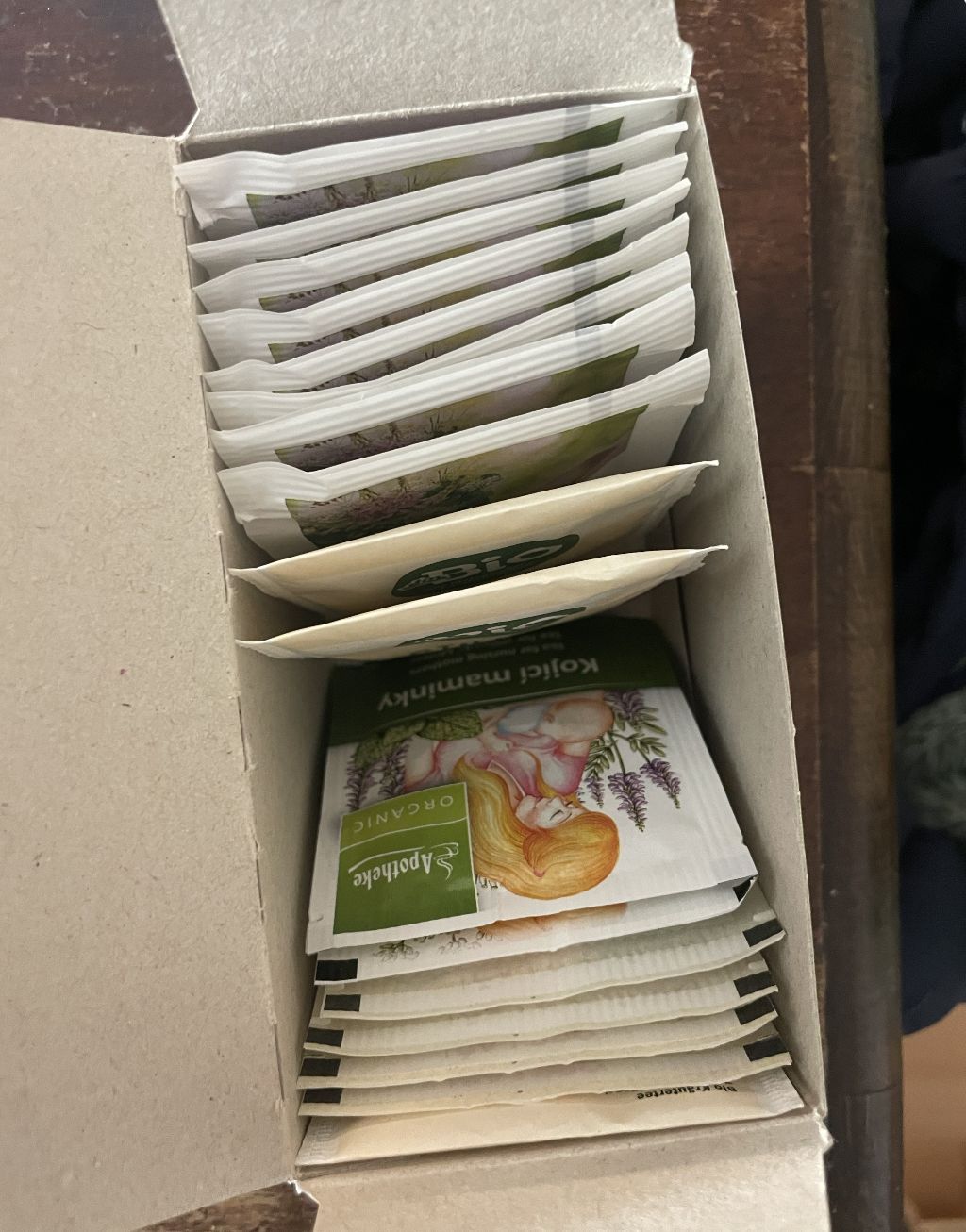 Daruji za odvoz dvě krabičky kojících čajů - různé druhy.
