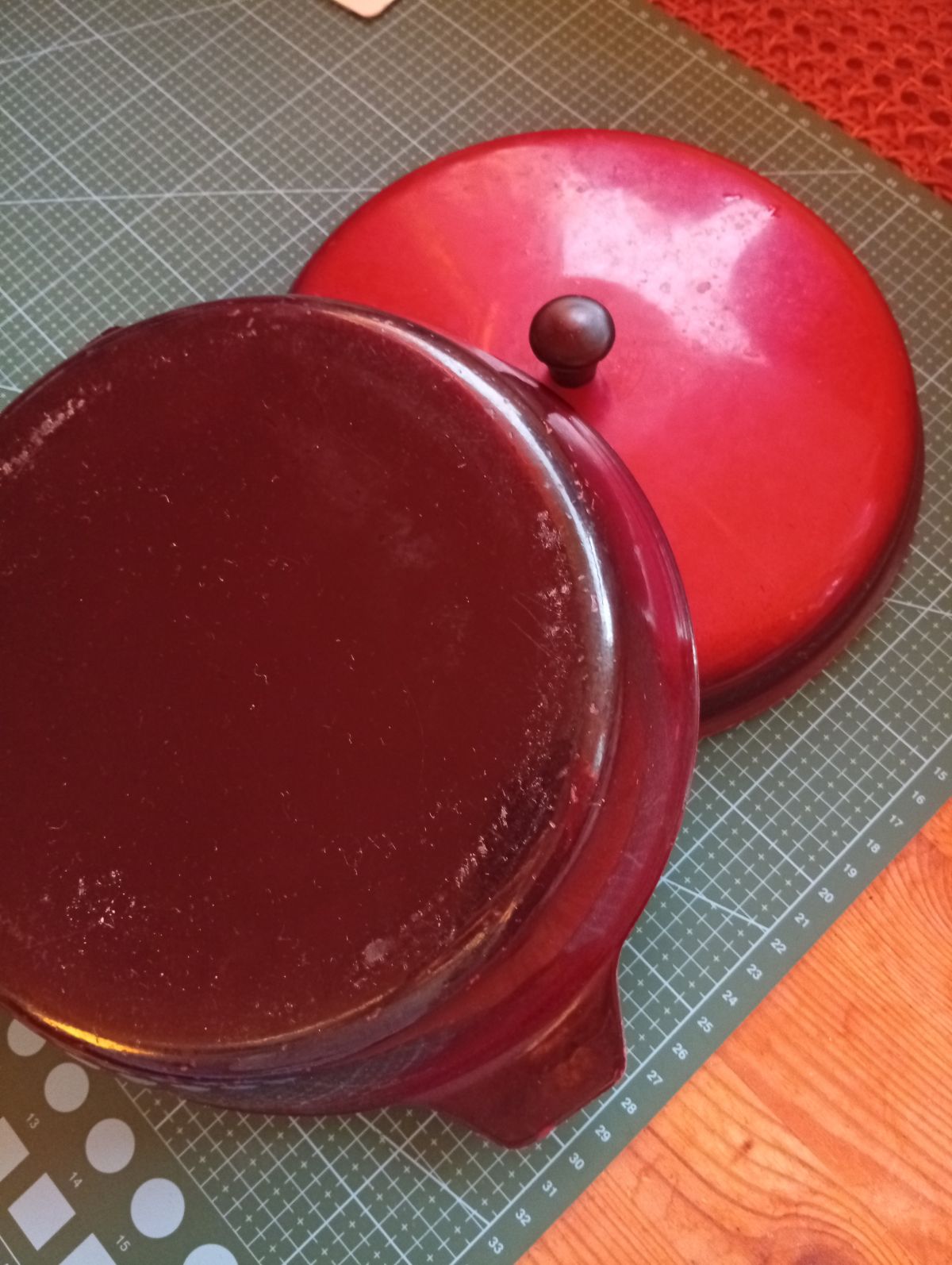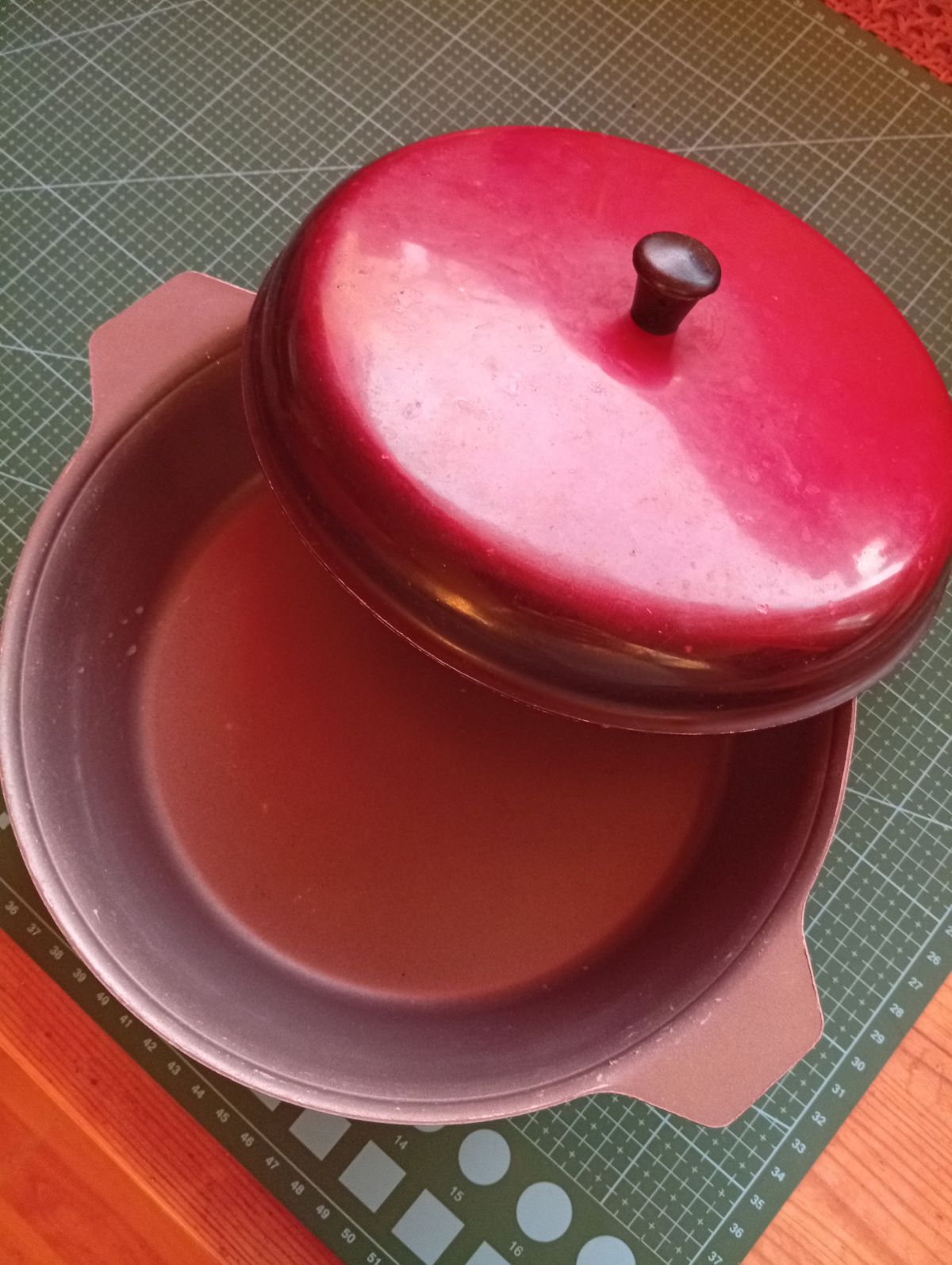 Průměr 20 cm, výška 6 cm. Dobrý stav.
