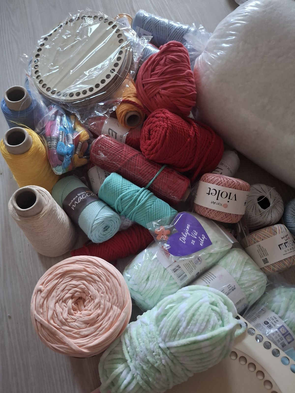 Daruji za odvoz příze, šňůry a dna na košíky, příze na macramé, výplň do hraček, bavlnky apod. Jen vše dohromady a osobní odběr v Praze Malešicích.