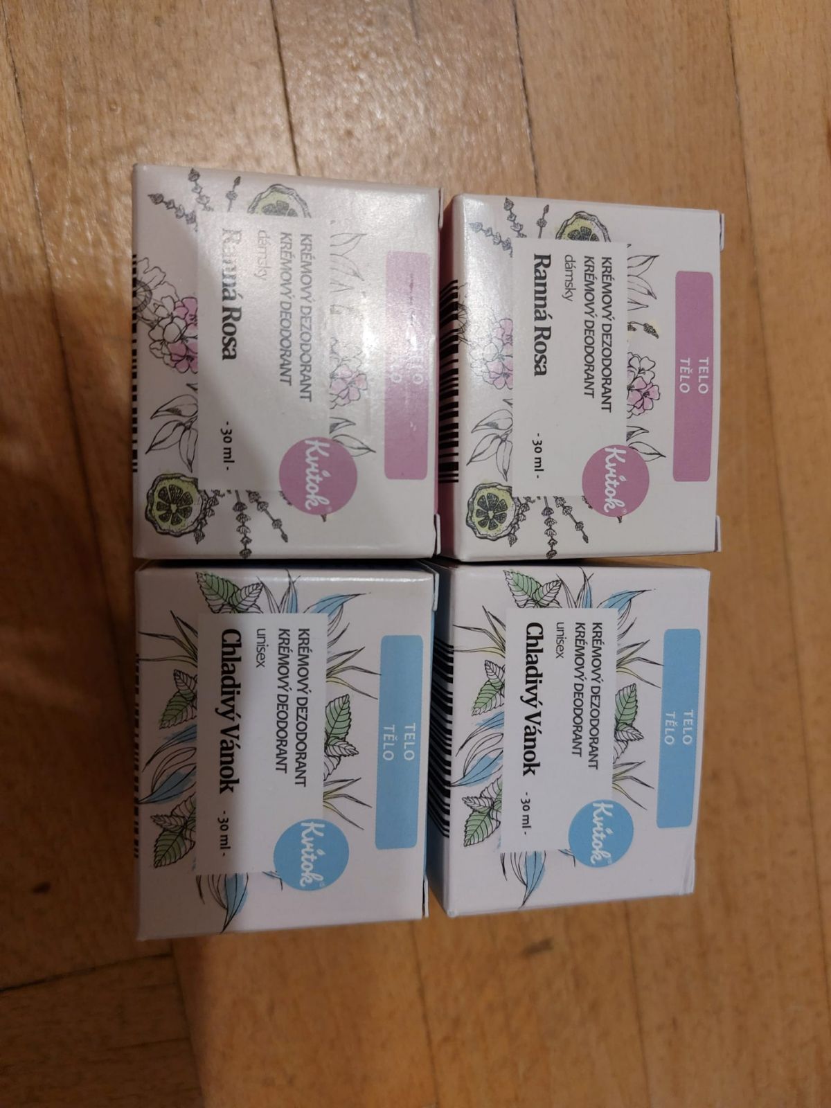Daruji 4 NOVÉ přírodní deodoranty od Kvitok, které již nemohu používat. Jsou nenačaté. Exspirace viz foto.