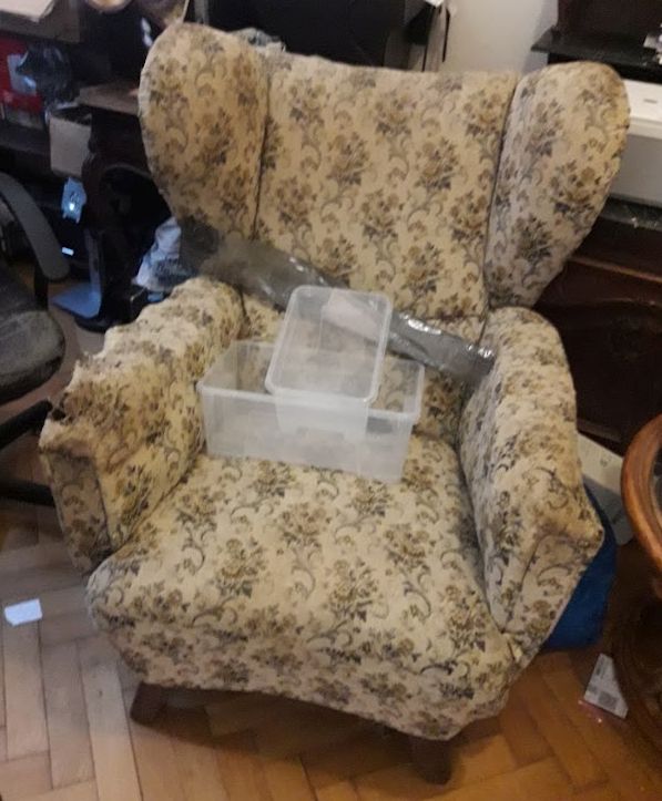 Daruji za odvoz křeslo, je velmi pohodlné, látka na pravé područce rozedraná.