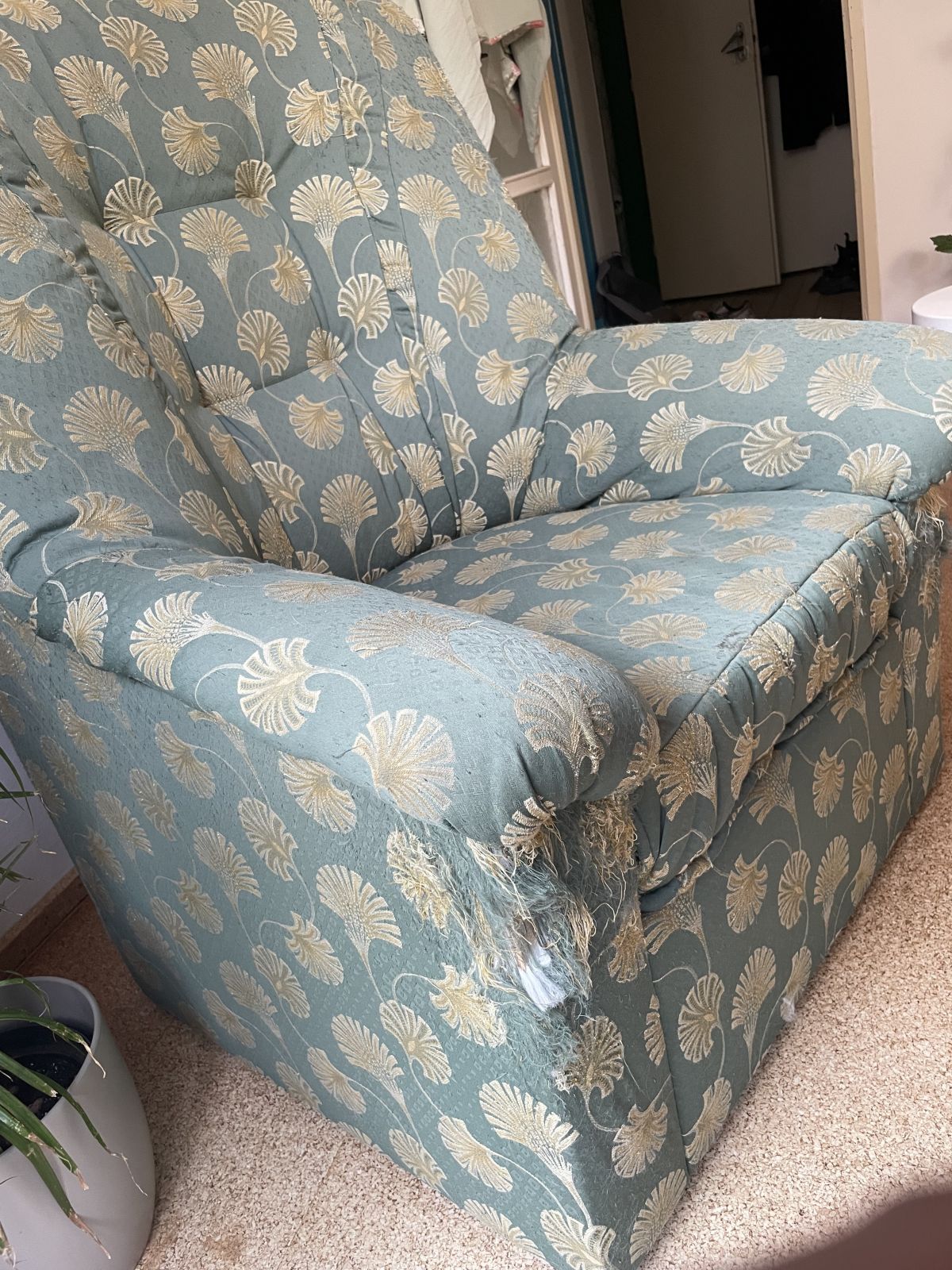 Daruji za odvoz velké a velmi pohodlné křeslo. Potah je místy potrhaný od koček (viz foto), jinak plně funkční. Osobní vyzvednutí Praha 6 - Dejvice.