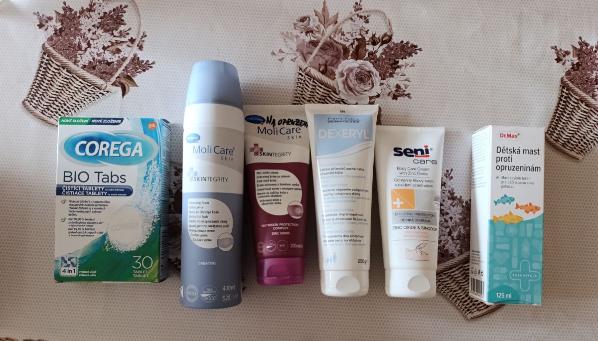 Daruji různé krémy na opruzeniny, se zinkem apod... Čisticí pěnu a čisticí tablety Corega... Vše po expiraci, ale v pořádku, dětská mast neotevřená, jinak otevřené.