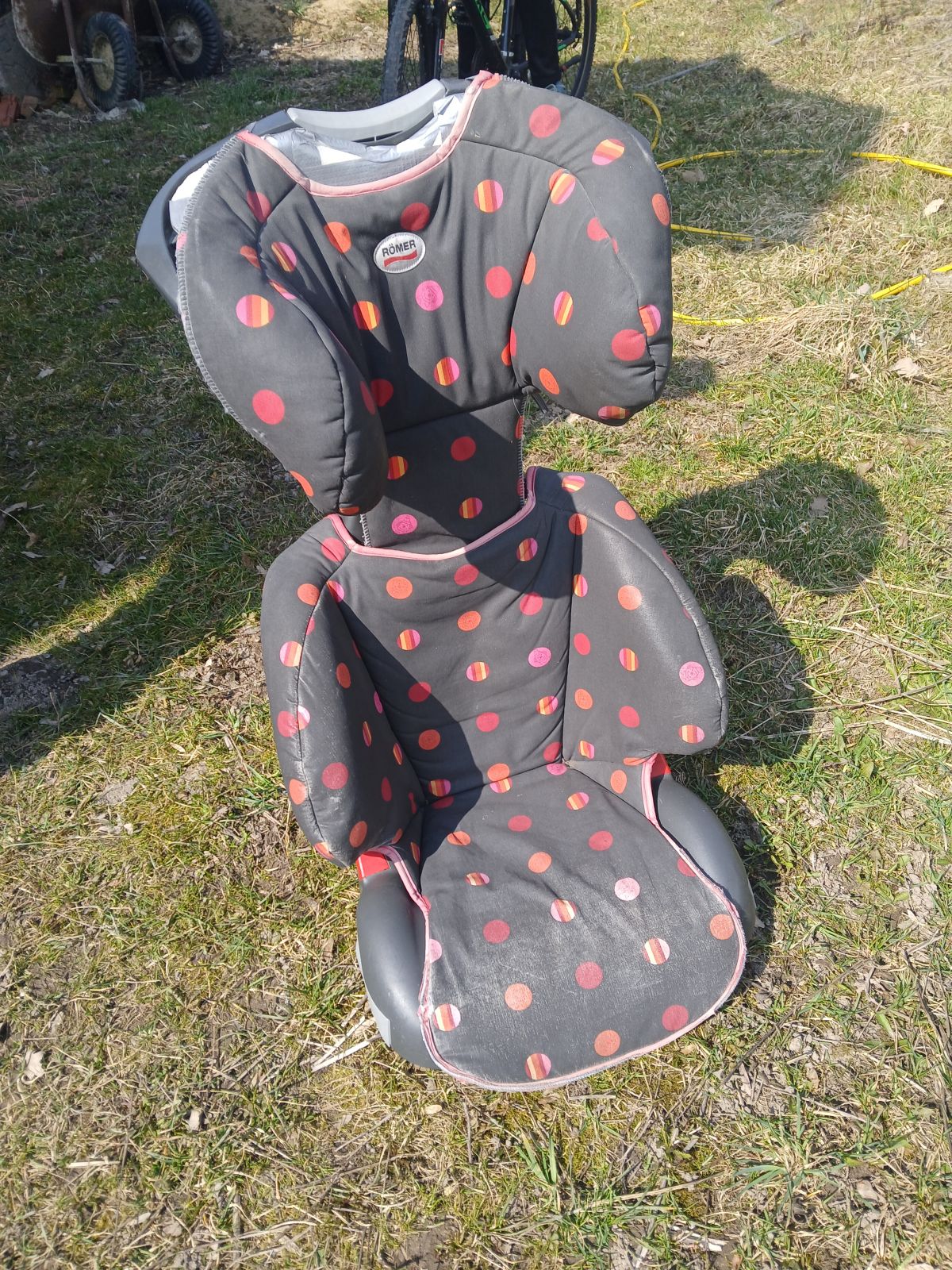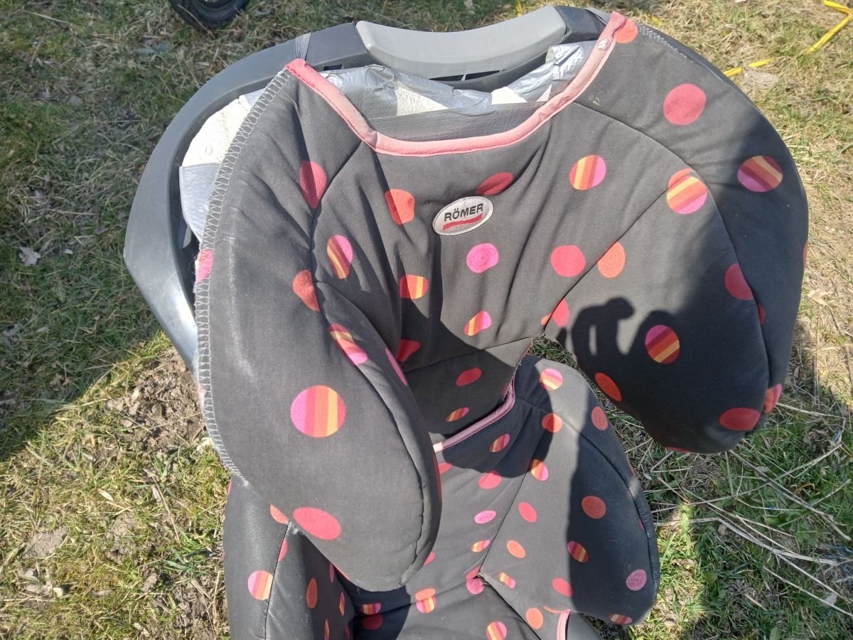 Sedačka Römer po několika dětech, polystyrénová část opěrky u hlavy slepovaná tesa páskou - viz fotka. Jinak vše funkční.