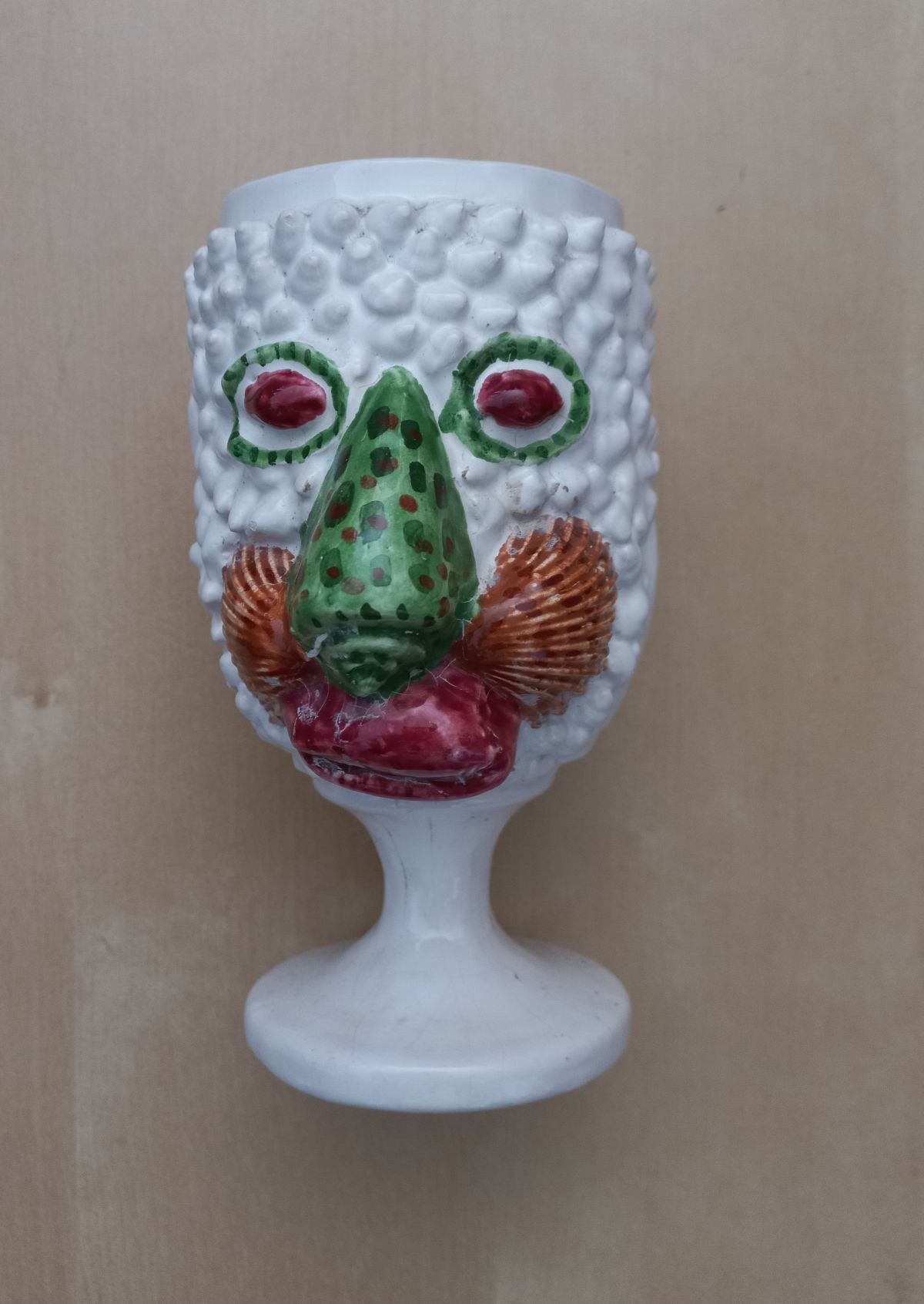 Daruji za odvoz keramický pohár s vyrýsovaným obličejem. Výška: 17 cm.