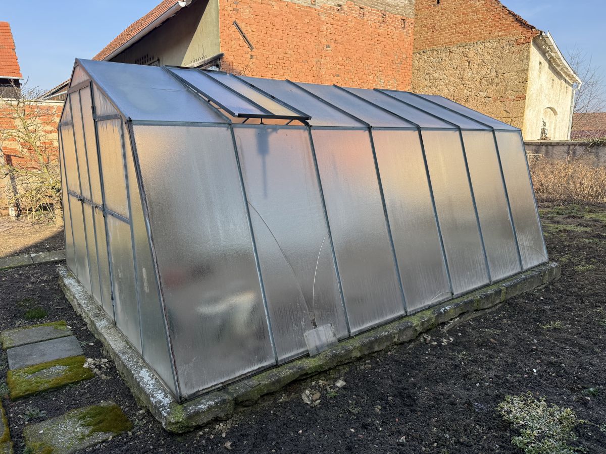 Daruji za odvoz skleník 4x3 metry, skla jsou zasilikonovaná, nutné buď v celku nebo rozřezat. Odvoz nutný 20-22.3 . Při pokusu o rozebrání předchozími zájemci rozbité dvě tabule - není na fotkách- jedna boční , jedna horní