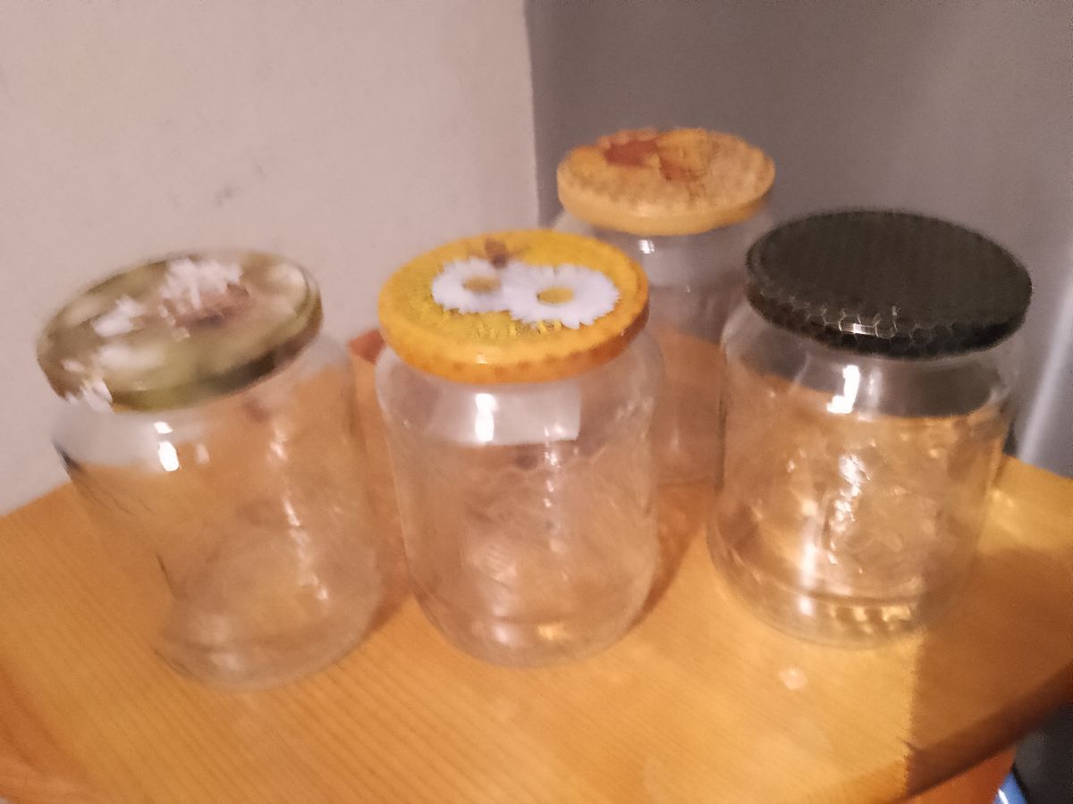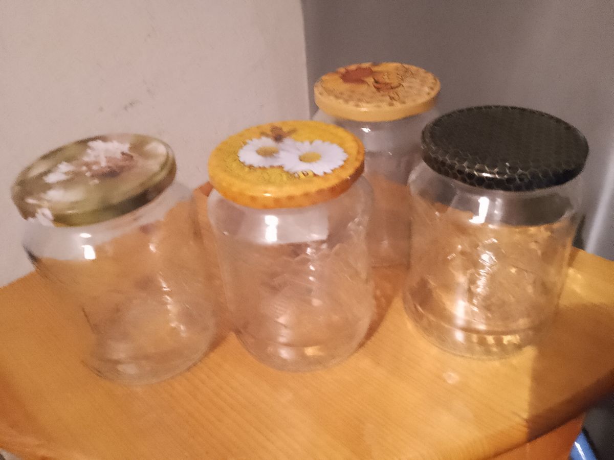 Daruji za odvoz 13 sklenic od medu, s originálními včelařskými víčky a vzorem na skle.