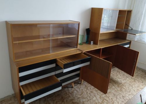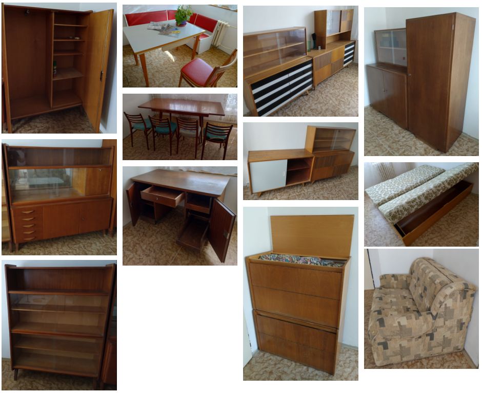 Nábytek je zachovalý a plně funkční, běžné opotřebení odpovídá stáří.