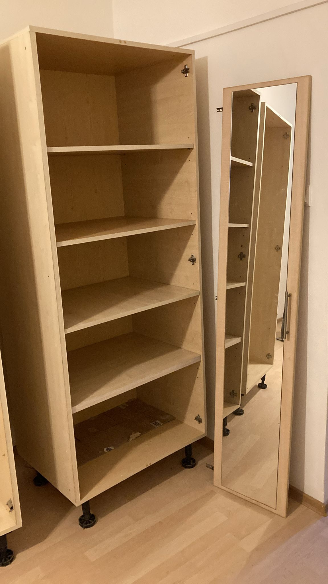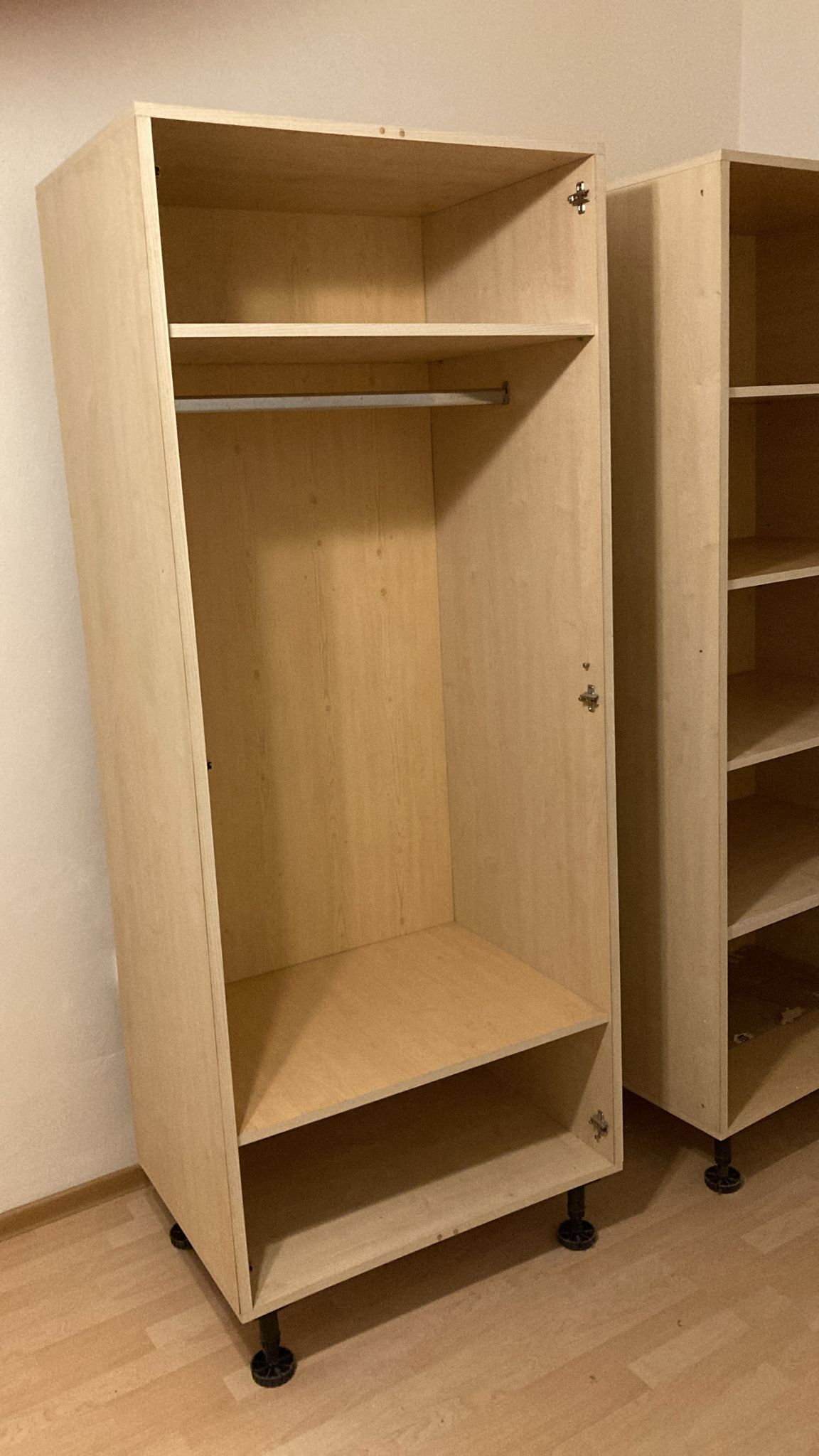 Daruji za odvoz dvě šatní skříně. Na obrázku jsou bohužel vyfocené bez dvířek kvůli stěhování. Ale jedna skříň má obě křídla se zrcadly, jedna bez.