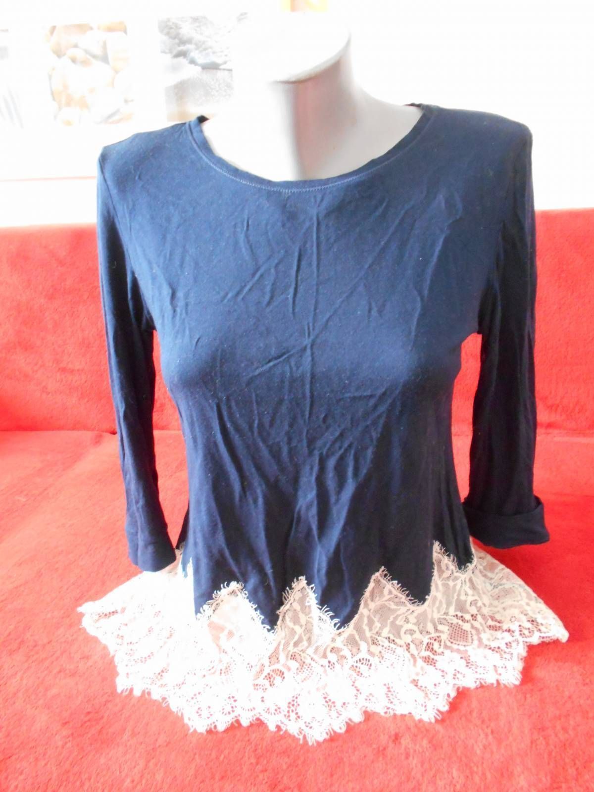 Tmavě modré triko s krajkou vel. 40
