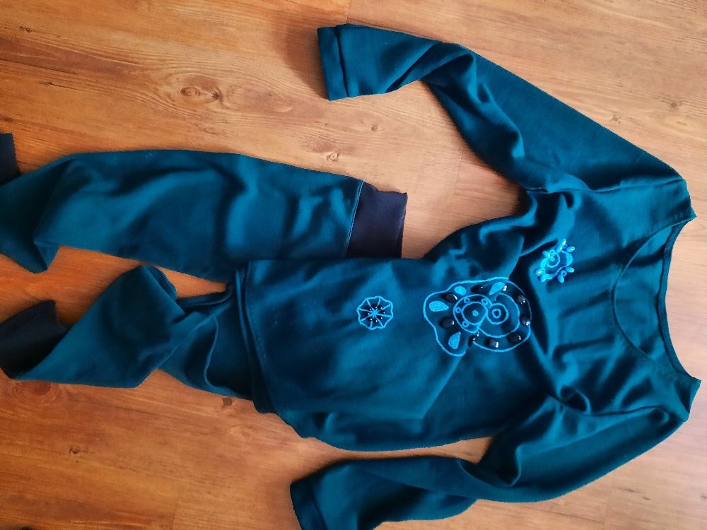 Daruji za odvoz zelený kompet, kalhoty velikost S (elastické, 3/4). Vrchní díl cca velikost M. Vrchní mikina je tmavě zelené barvy-foto zkresluje.