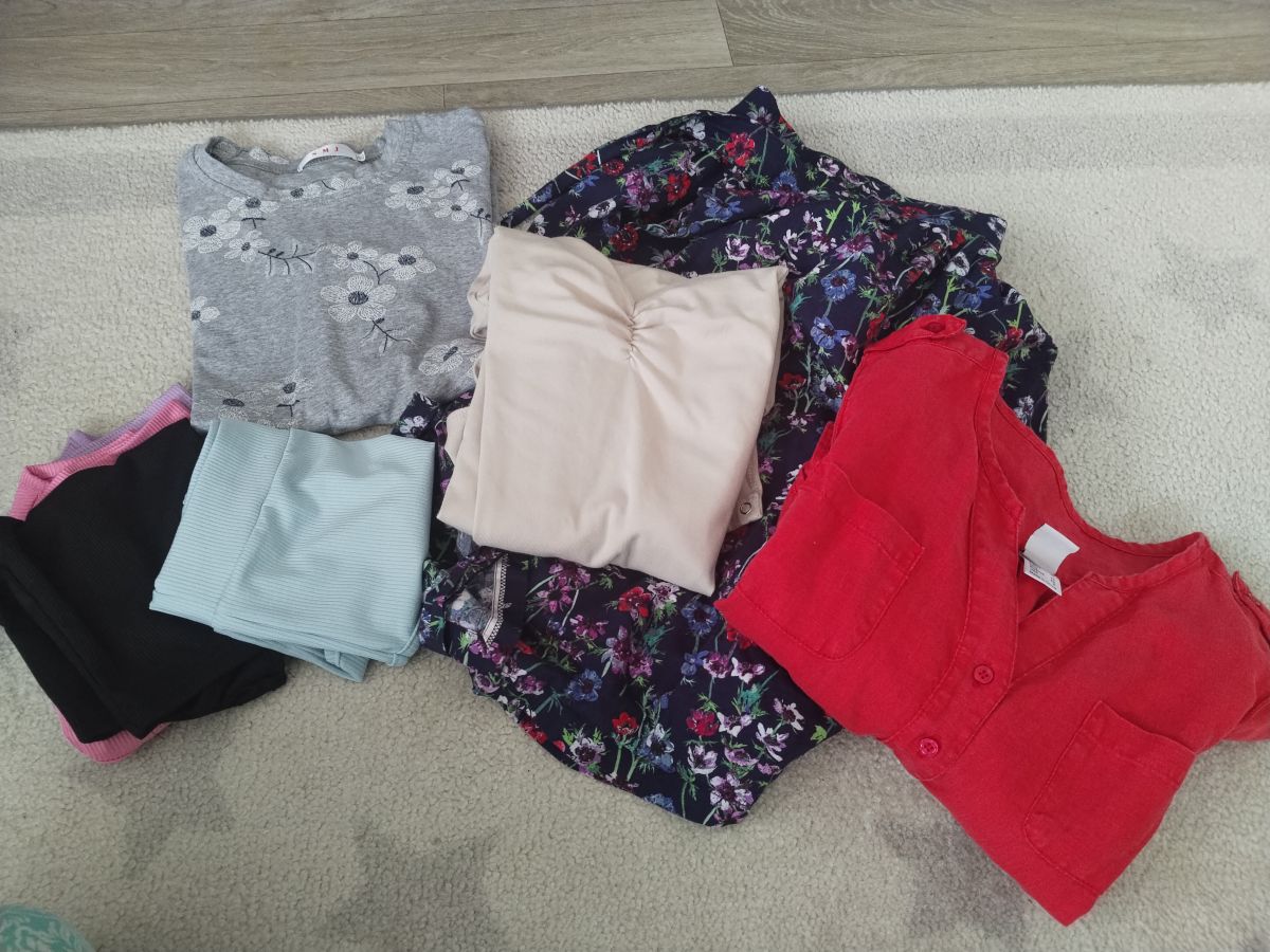 Daruji za odvoz hezké oblečení - červené šaty, květovaná sukně, dvě trička, čtyři topy na cvičení nebo pod oblečení. Osobní odběr v Brně v Bohunicích nebo na Hlavním nádraží po domluvě.