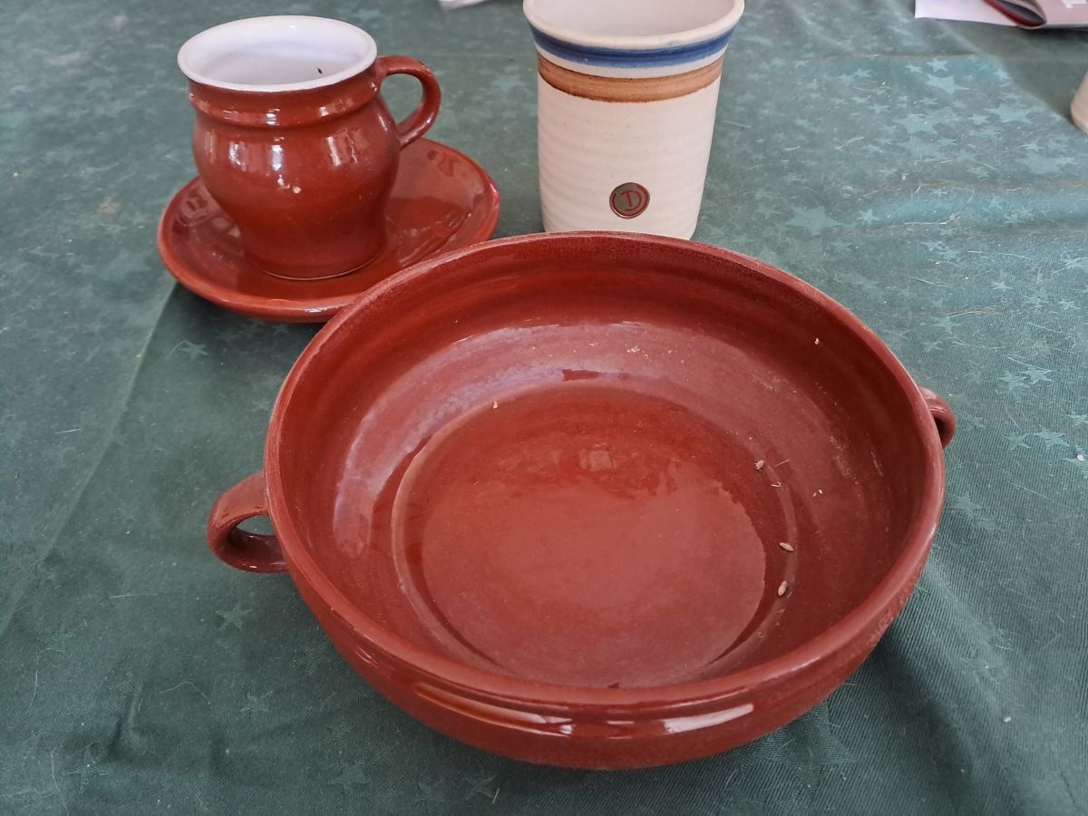 6 šálků , 5 podšálků a miska z keramiky, 4 keramické číšky