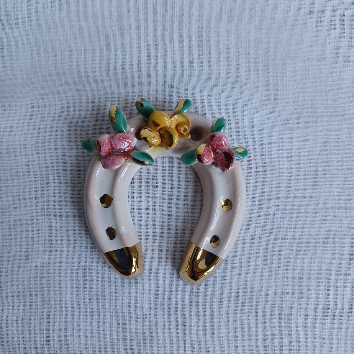 Daruji za odvoz keramickou ozdobu podkovu k zavěšení, rozměry 6.5 x 6.5 cm, v bezvadném stavu.