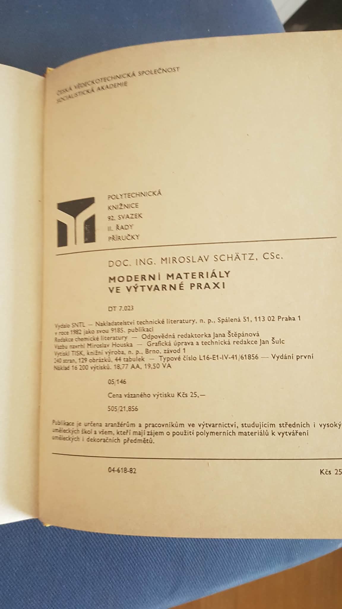 Schätz, Miroslav: Moderní materiály ve výtvarné praxi, 1982.