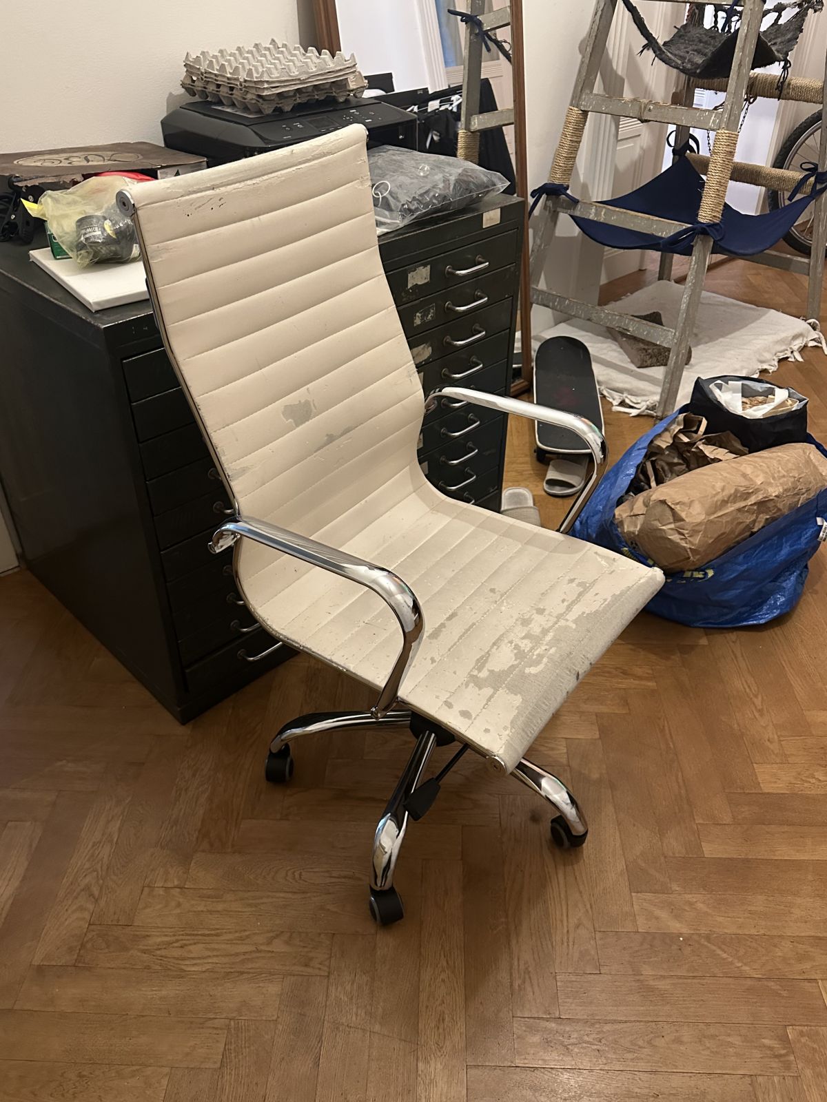 Daruji za odvoz židli, mechanika je v pořádku, u židle se dá nastavit výška, může být i ohebná dozadu nebo stabilní, textilie opotřebený, stačí přetáhnout povlakem