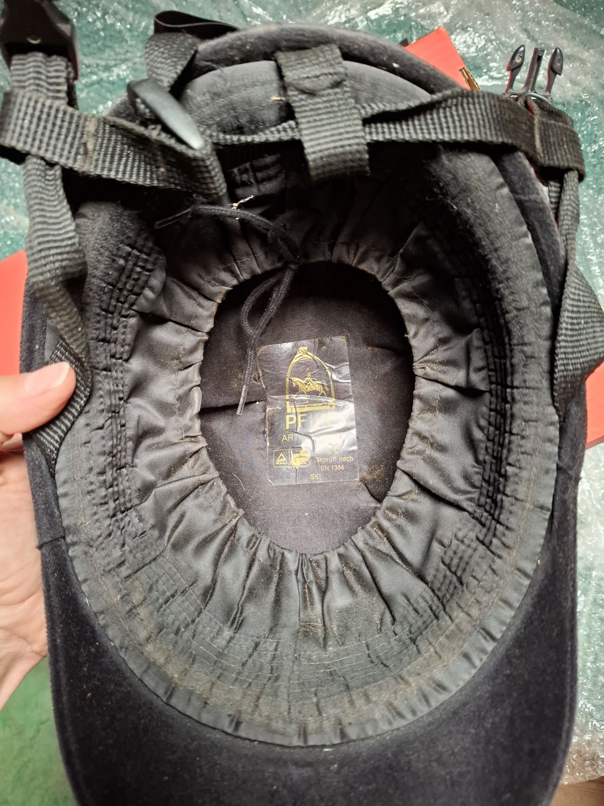 Daruji za odvoz jezdeckou helmu, prasklý horní knoflík, odlepená mašle, nutno vyčistit. Osobní převzetí Liberec 1.
