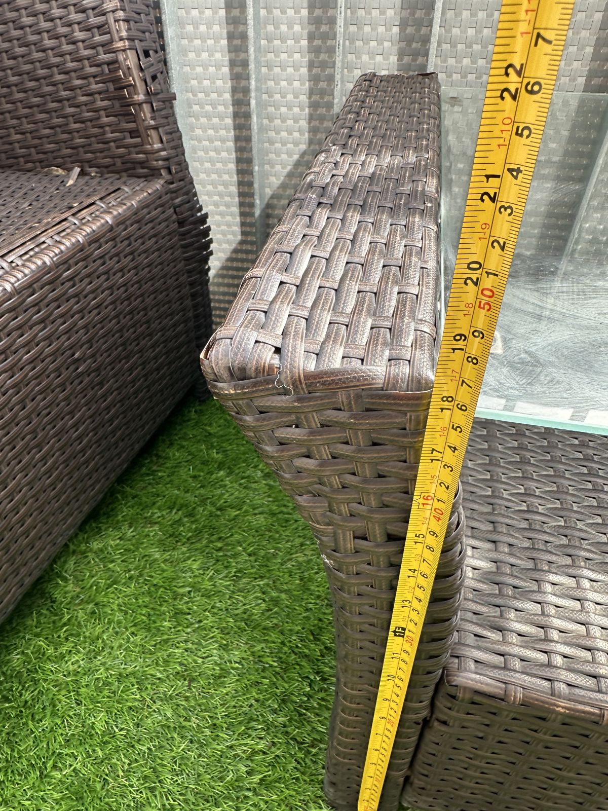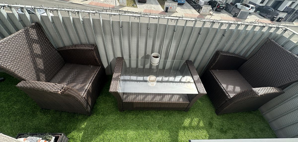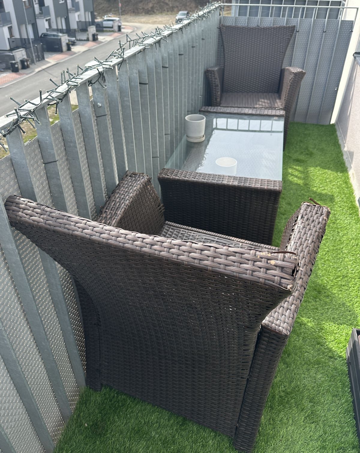 Daruji za odvoz robustní hnědý zahradní set dvou křesel a stolu z umělého ratanu. Konstrukce pevná, viditelné známky opotřebení.
