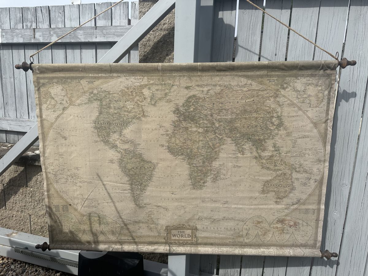 Daruji za odvoz mapu světa. Pripevnena na kovovych tycich. Nove jeste s vysackou, nalezeno na pude domu.
