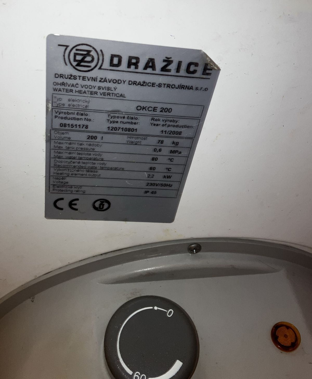 Daruji za odvoz ohřívací bojler Dražice na 200l. Bojler funkční, měním za menší. Je z roku 2008. Nutná demontáž ze stěny, neboť mi na něj samotné síly nestačí.