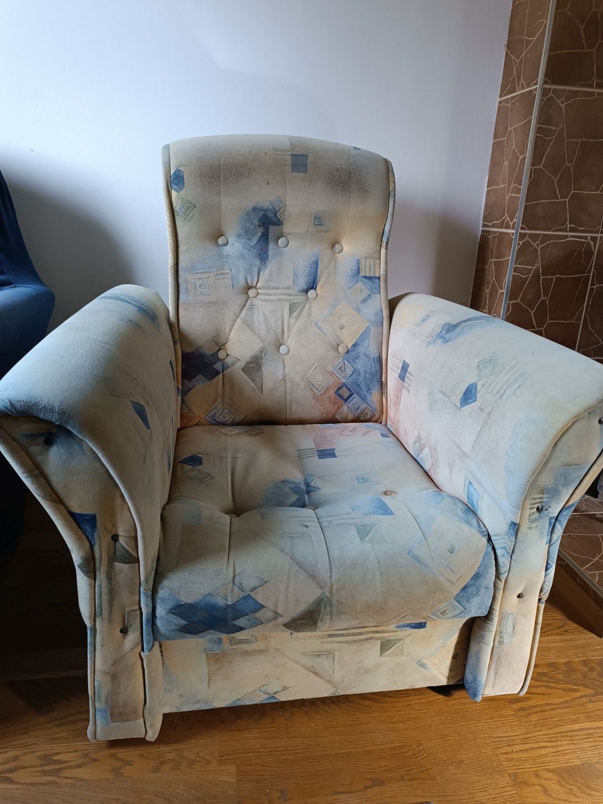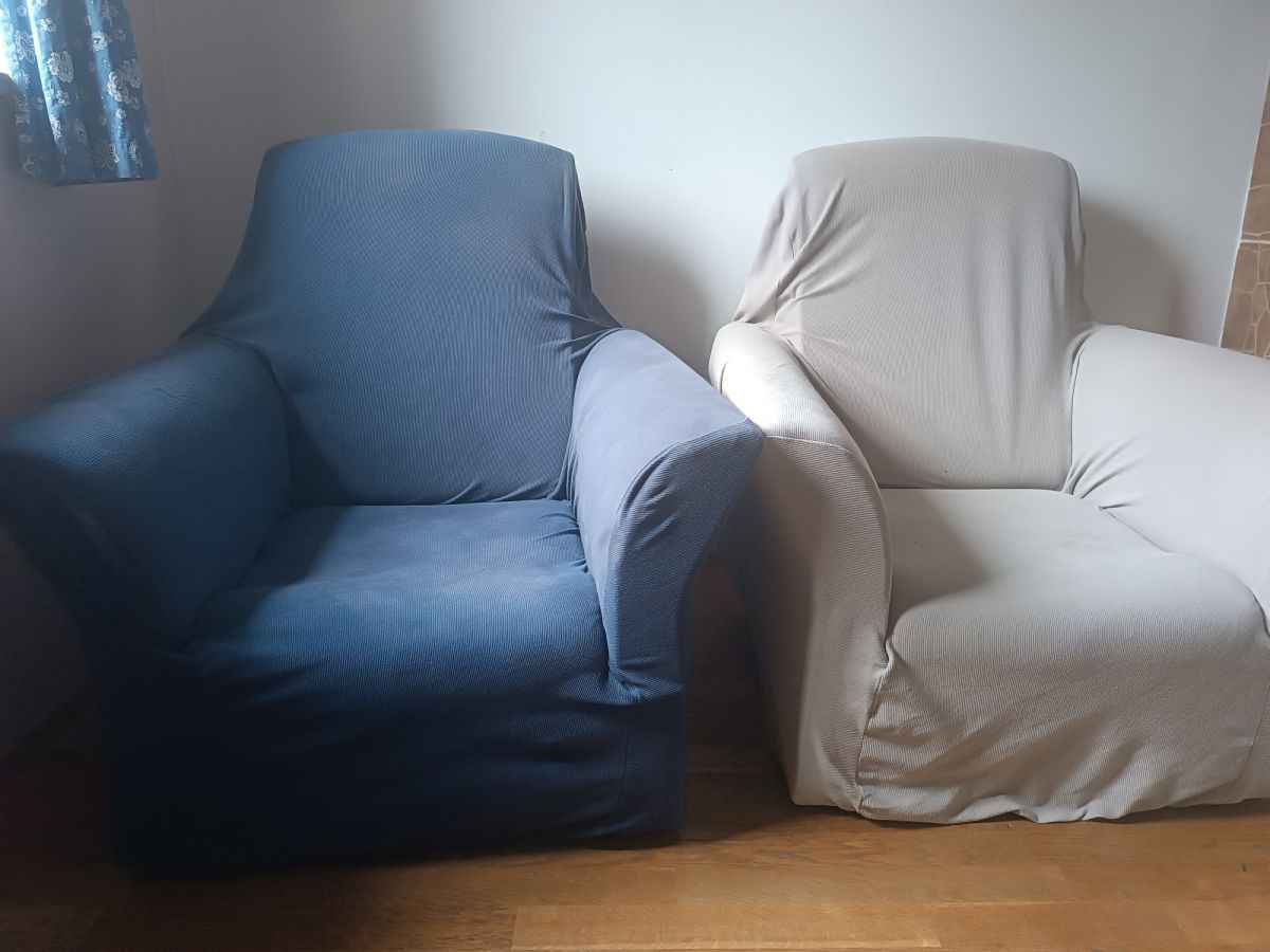 Daruji za odvoz křesla 2 kusy, rozměr 90x90x90 cm, včetně potahu (modrý a šedý), plně funkční.