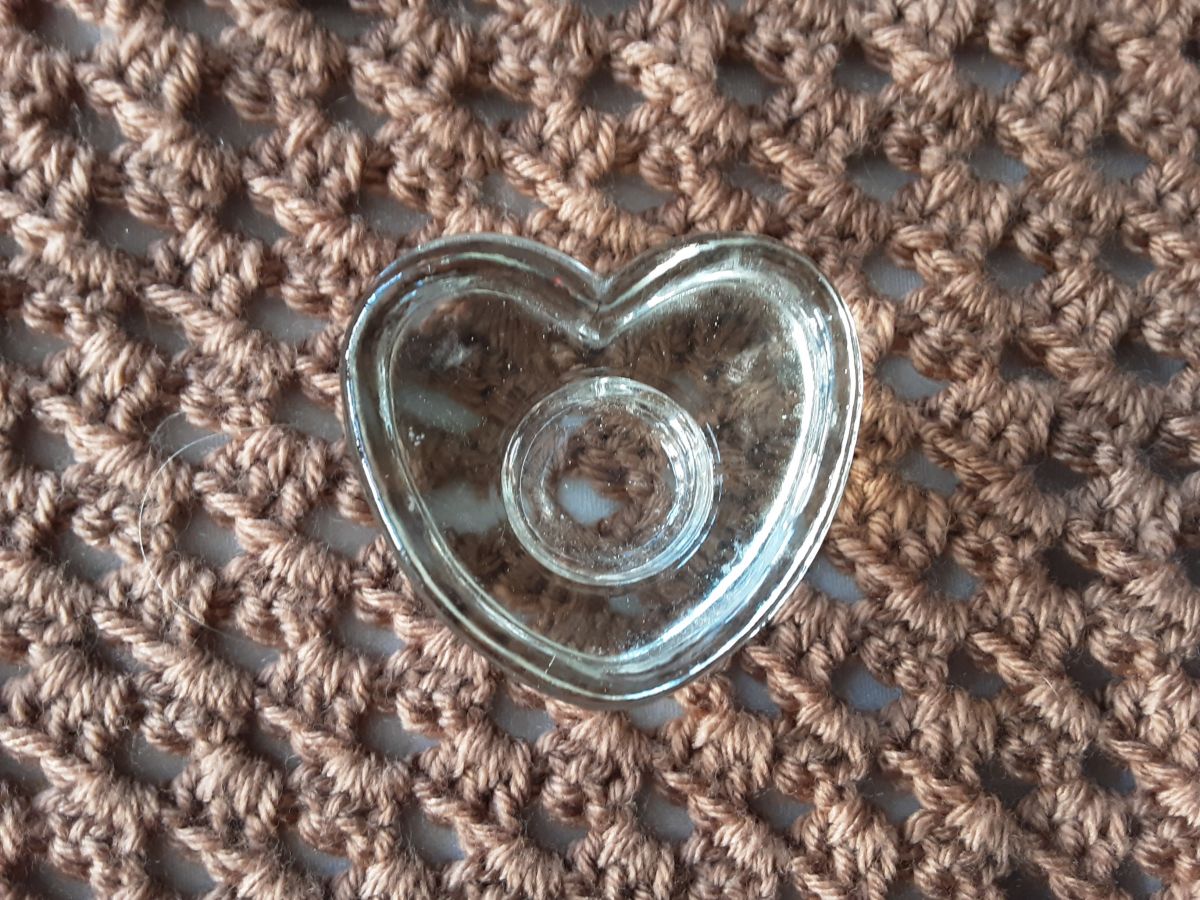 Daruji za odvoz skleněné srdíčko 5 cm s otvorem pro malou svíčku. Možná lze použít i jinak.