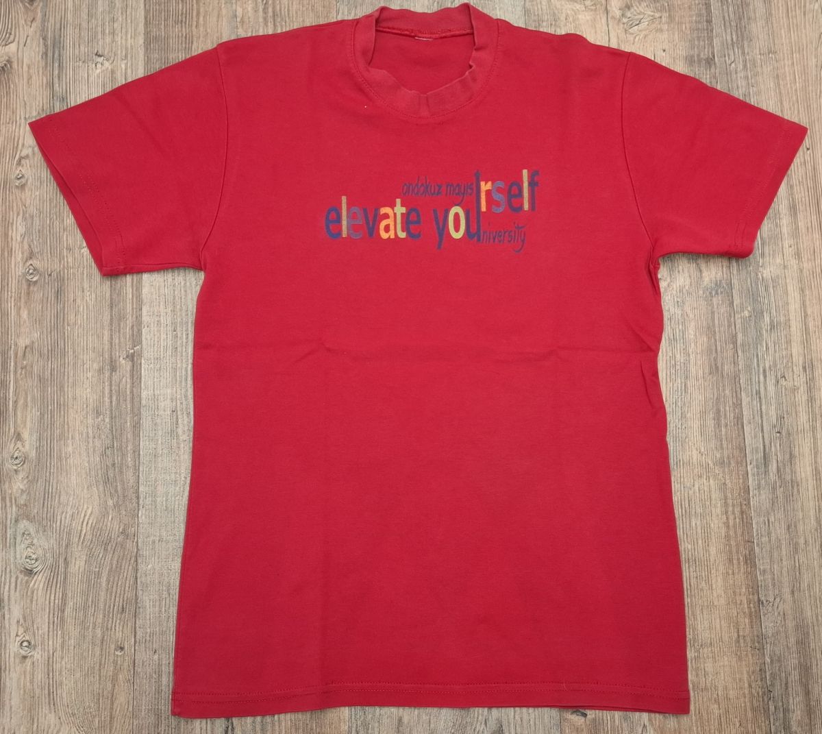 Červené triko s nápisem velikost L.