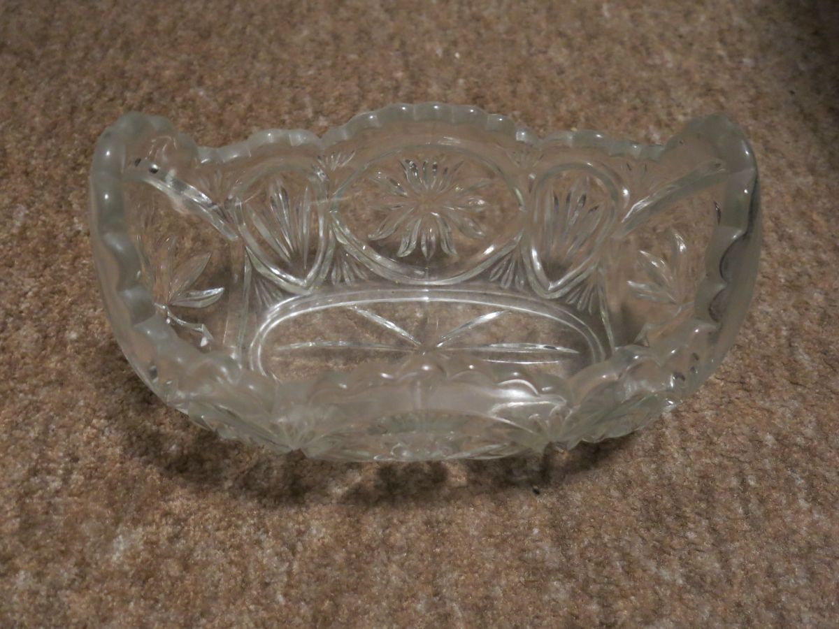 Daruji za odvoz skleněná mísa na ovoce, má prasklinu na dně, ale není skoro vidět
