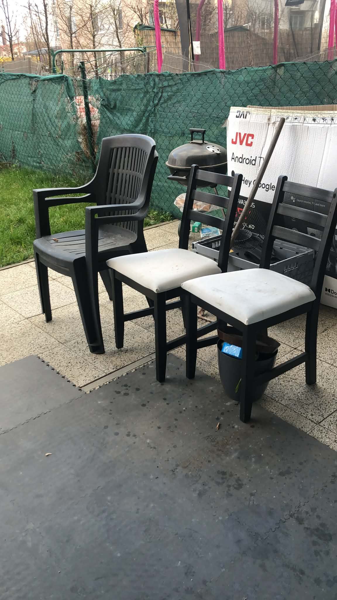 Daruji za odvoz 2 plastové a 2 čalouněné židle, stály venku pod střechou.