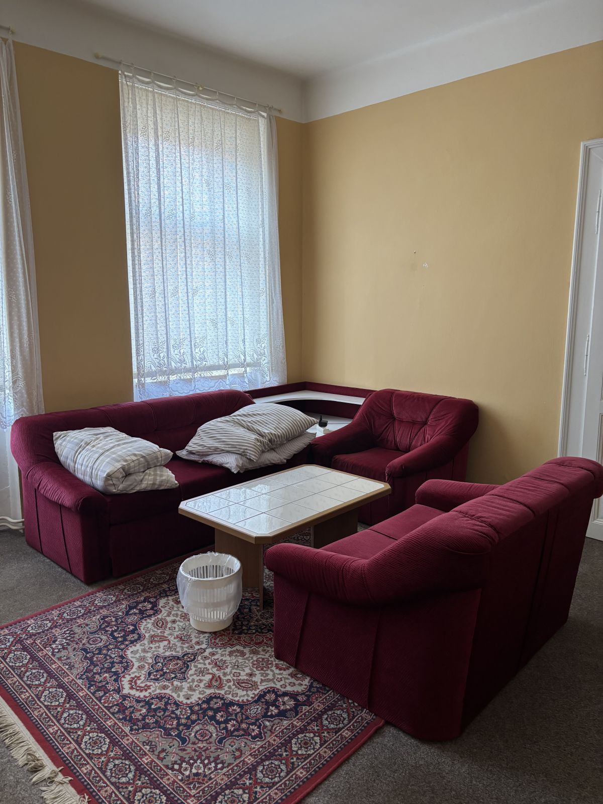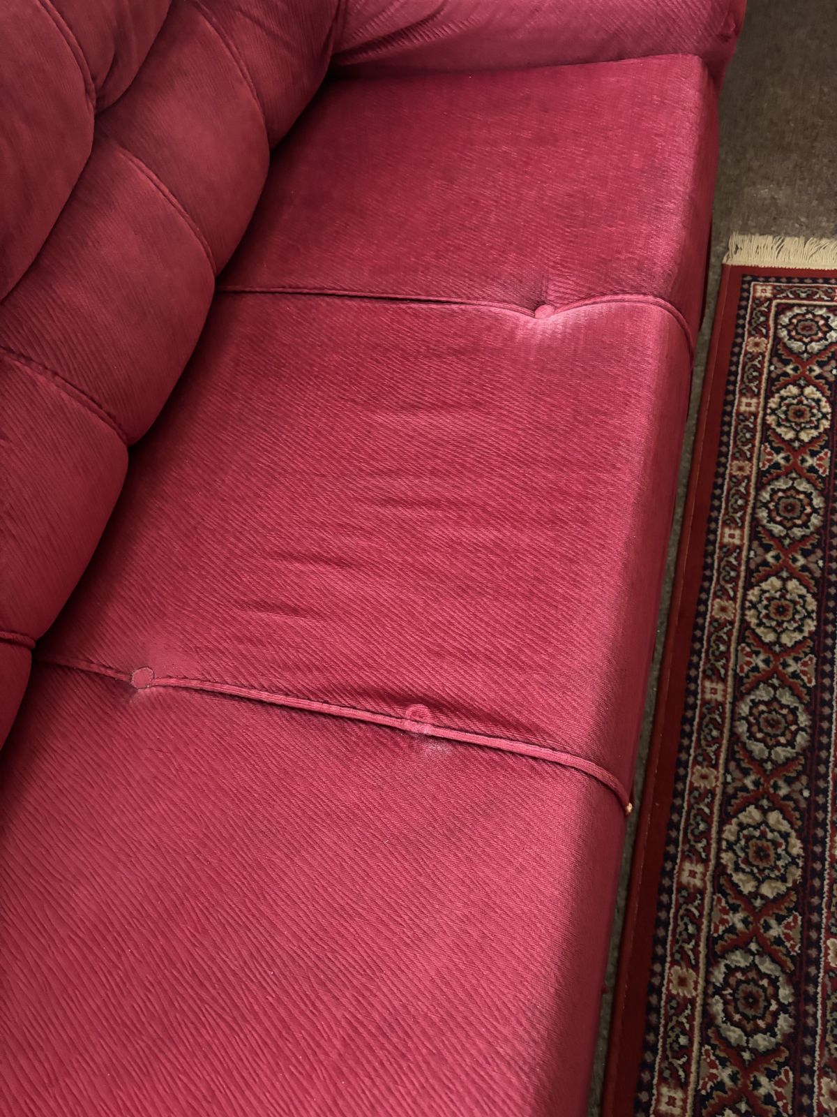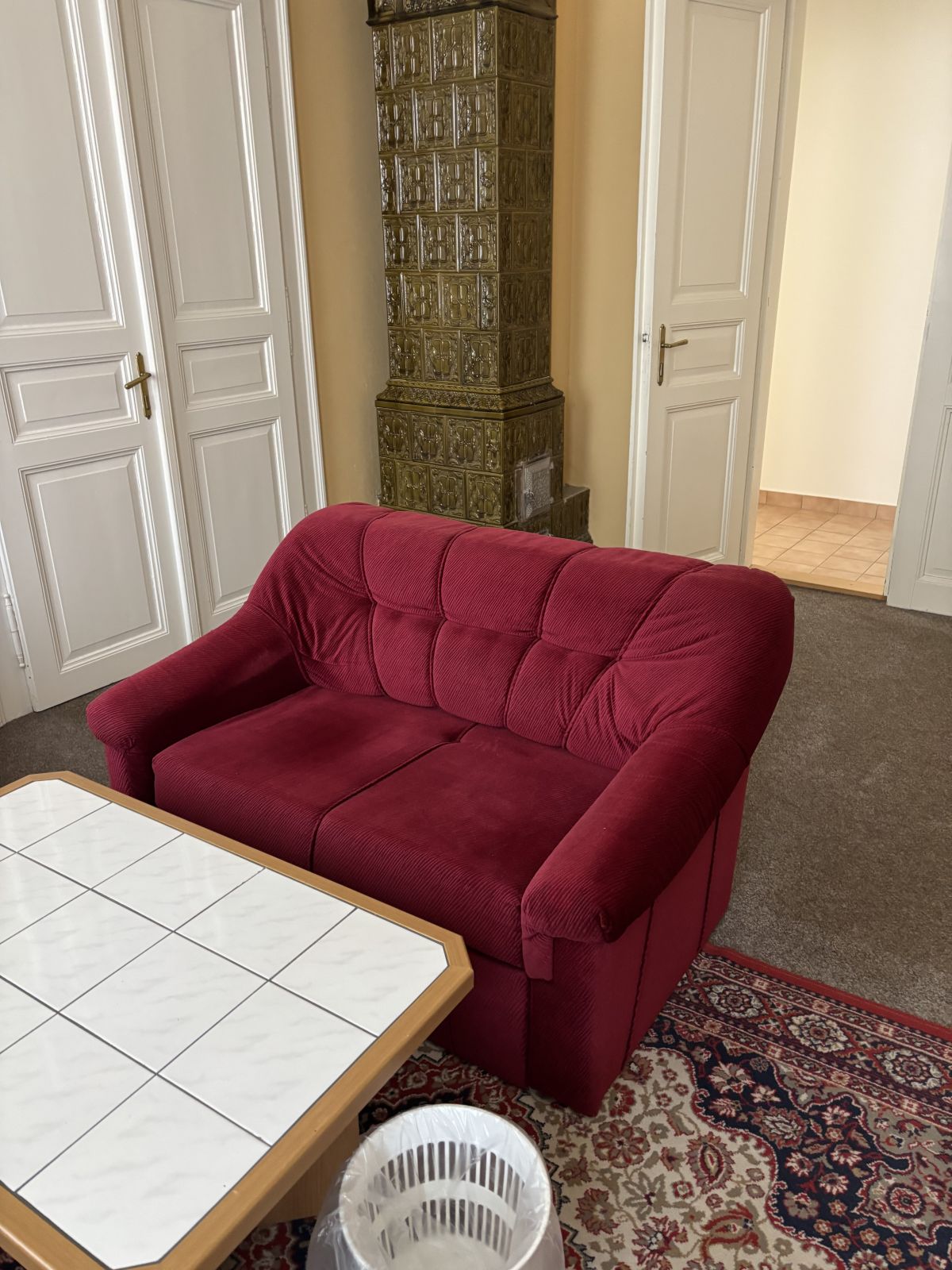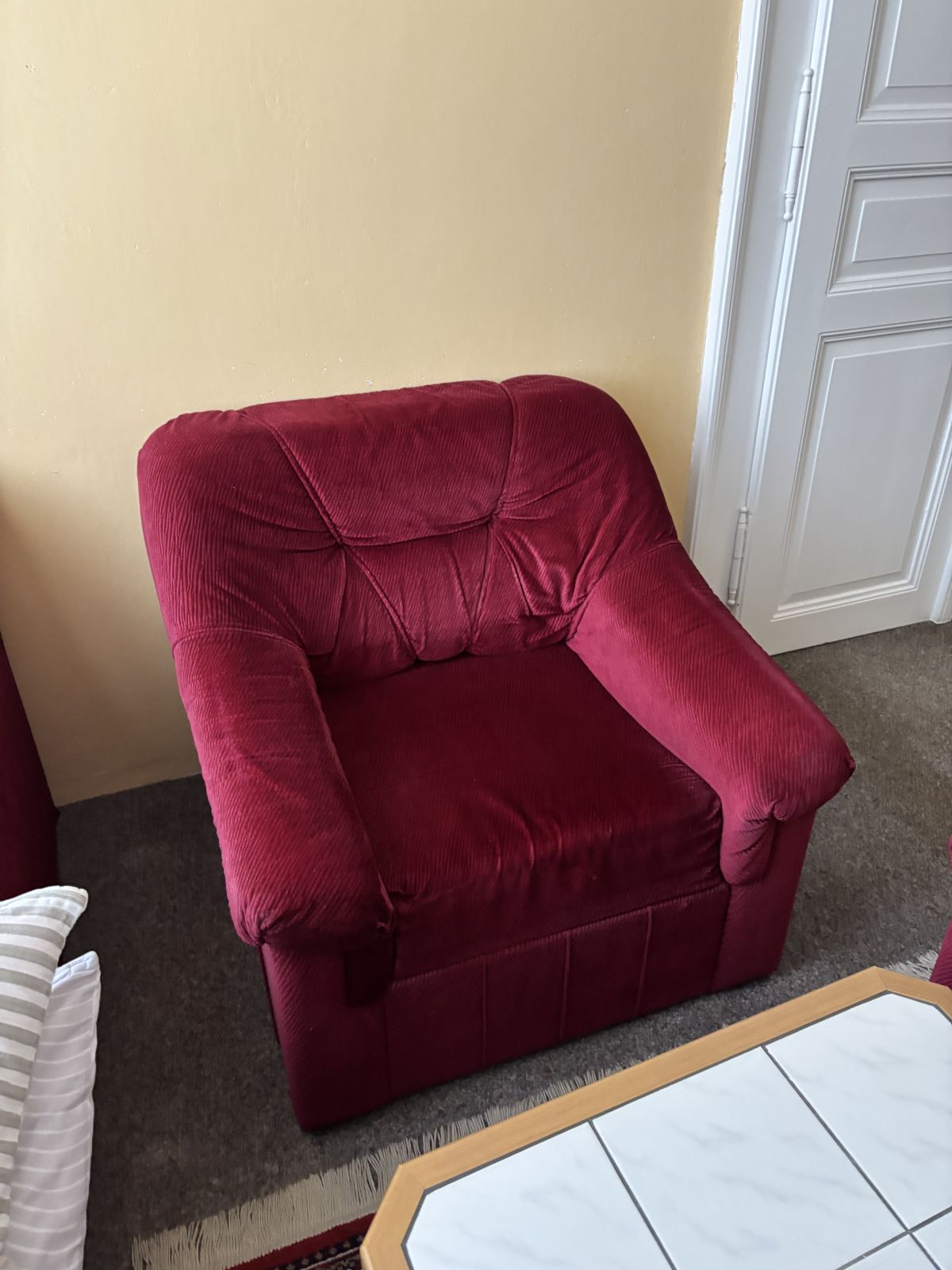 Daruji za odvoz, sedačka je potažená temně vínovým manšestrem. Délka gauče 2 m, dvojsedáku 1,5 m a křesla 1 m. Hloubka všech komponent je 1 m. Je vhodná do větší místnosti. Velmi zachovalá.
