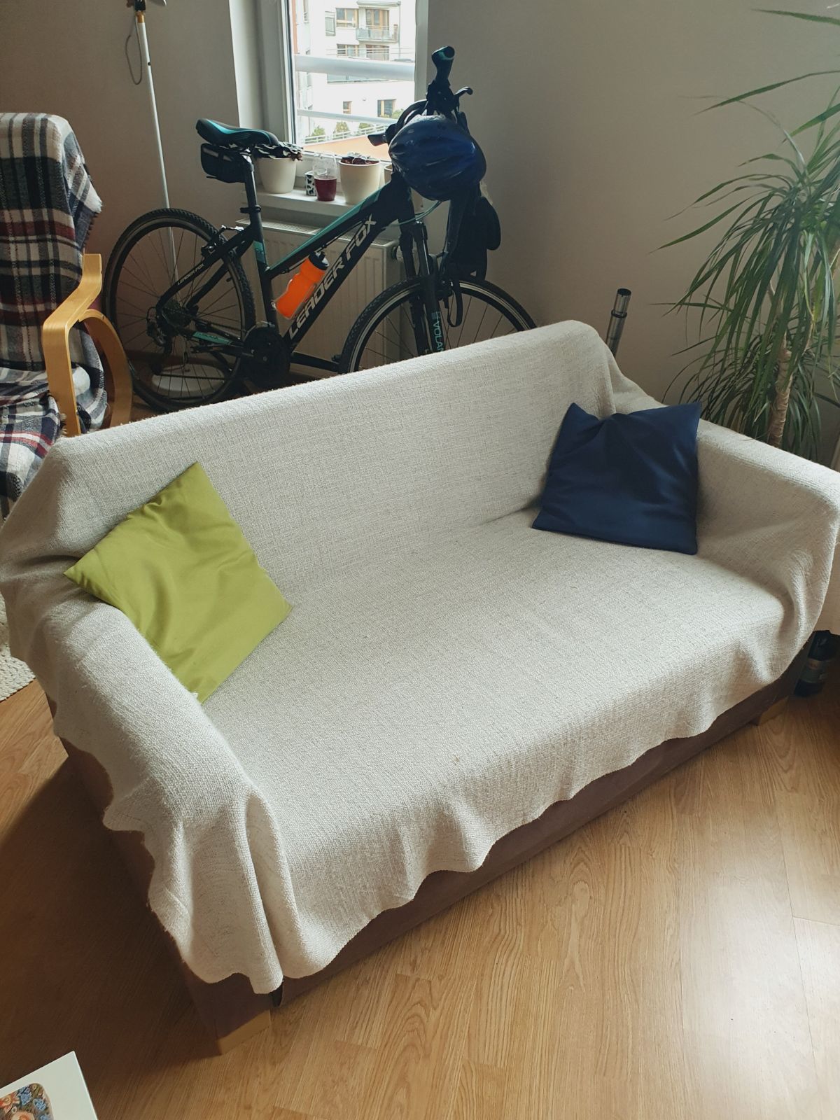 Výška 70cm, délka 140cm, hloubka 76 cm. Má skvrny po rozlité vodě.