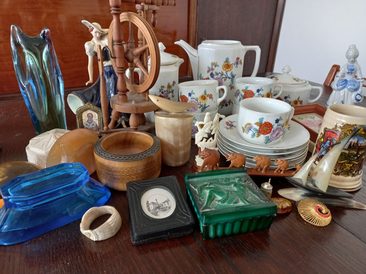 Daruji za odvoz hrníčky a jiné drobnosti. Mimo jiné čajový servis s květinovým vzorem a pak různé věci, jak je vidět na fotce. Vše sbaleno v jedné krabici od banánů.
