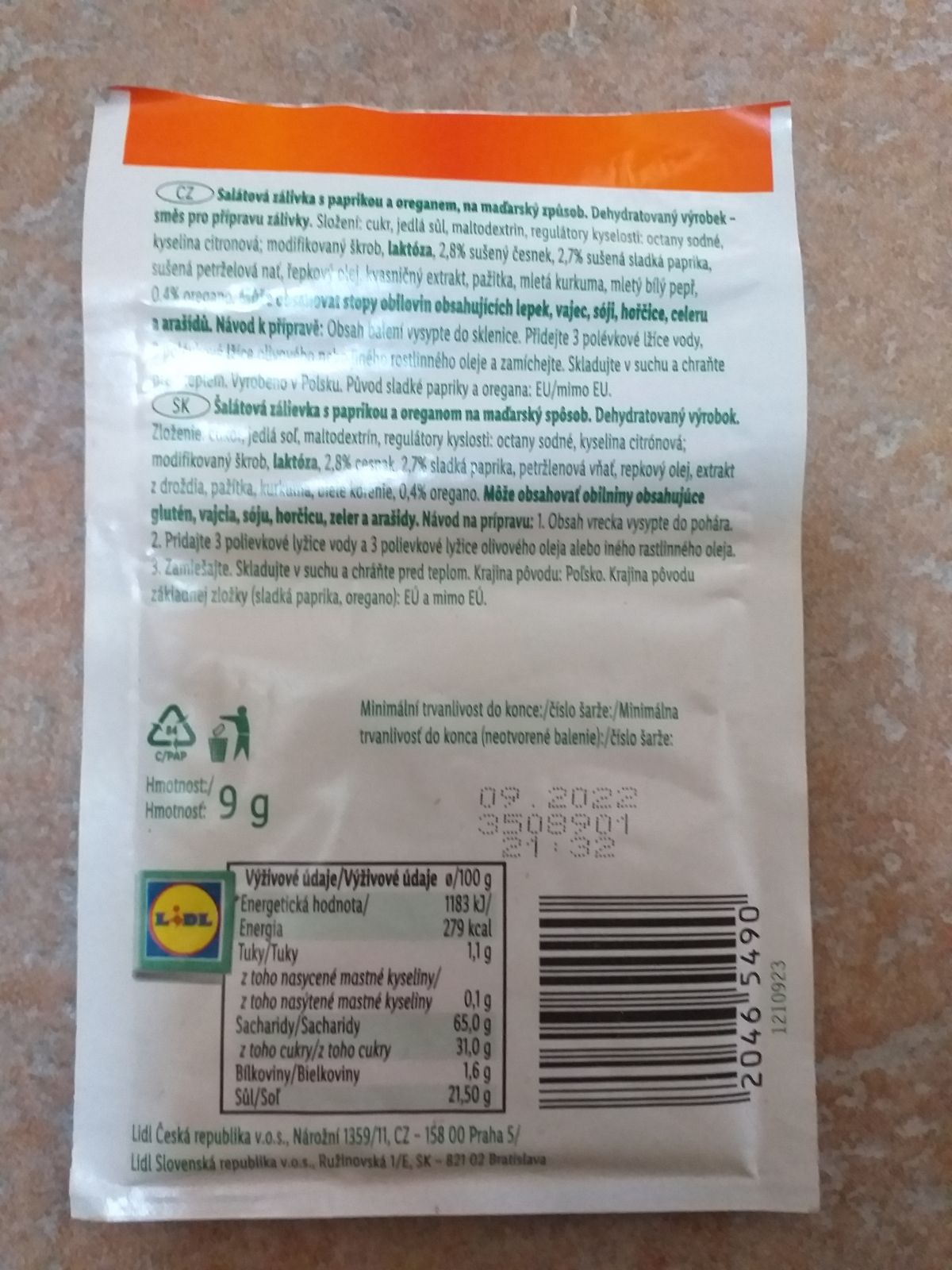 Salátová zálivka francouzská - po minimální trvanlivosti